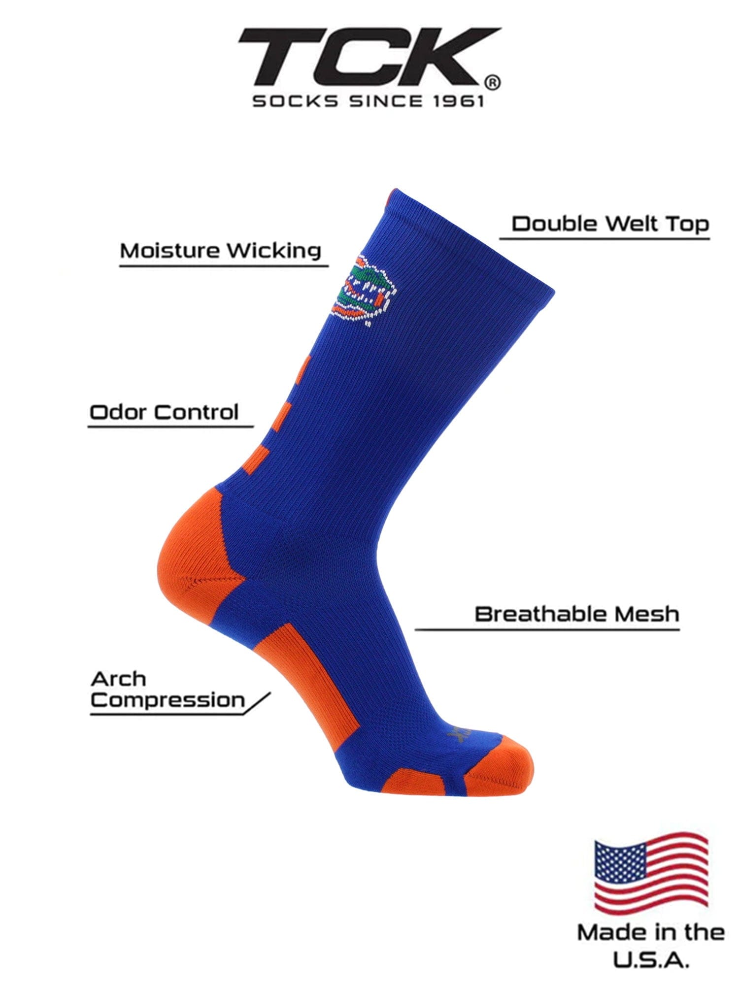 - COMFORT AND BREATHABILITY: These premium quality Florida Gators socks provide soft comfort. Mesh panel ventillation above the foot allows for proper air flow. Keeping the feet dry. Moisture management technology pulls away moisture from skin.