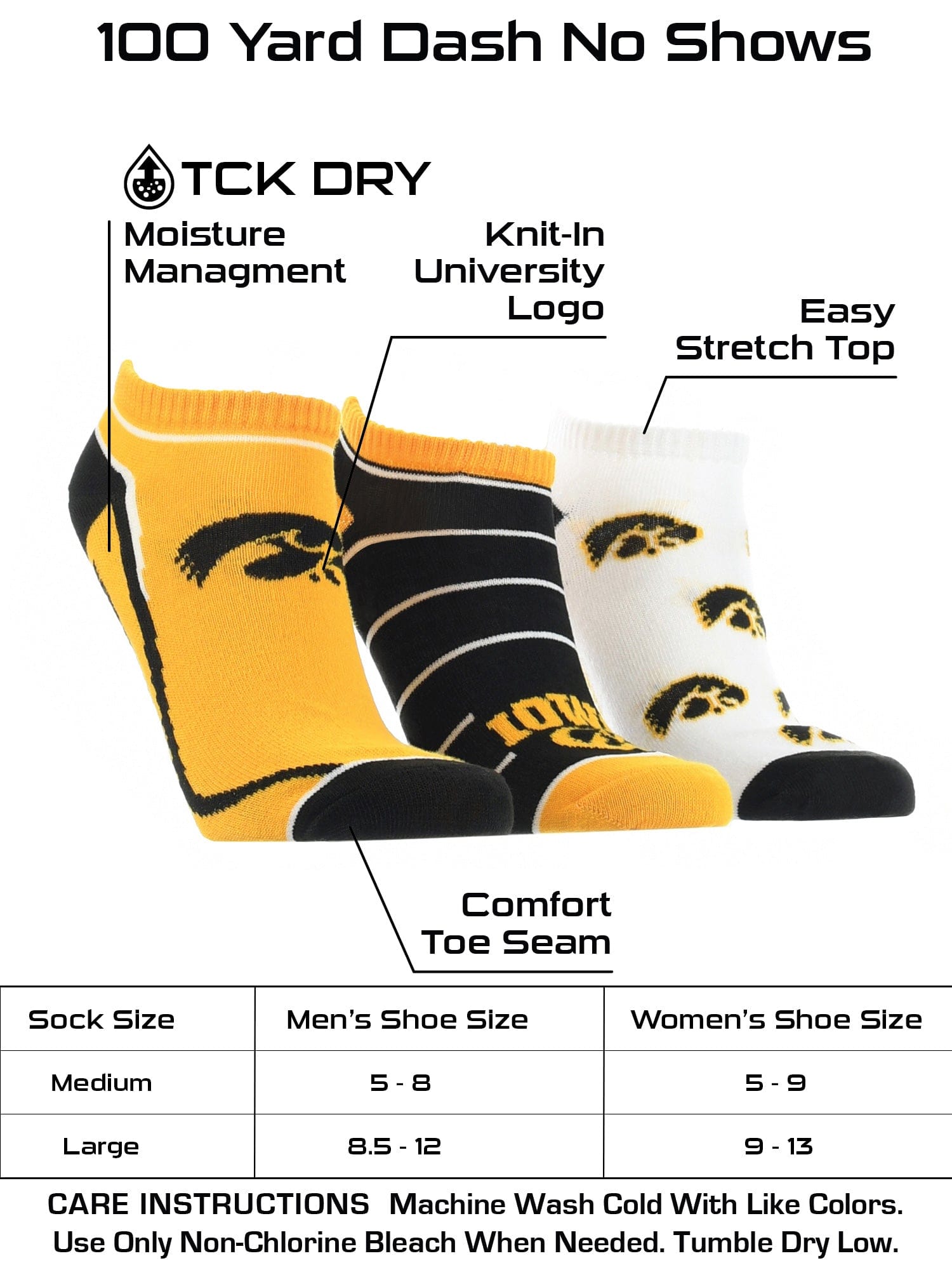 Iowa Hawkeyes No Show Socks Full Field 3 Pack