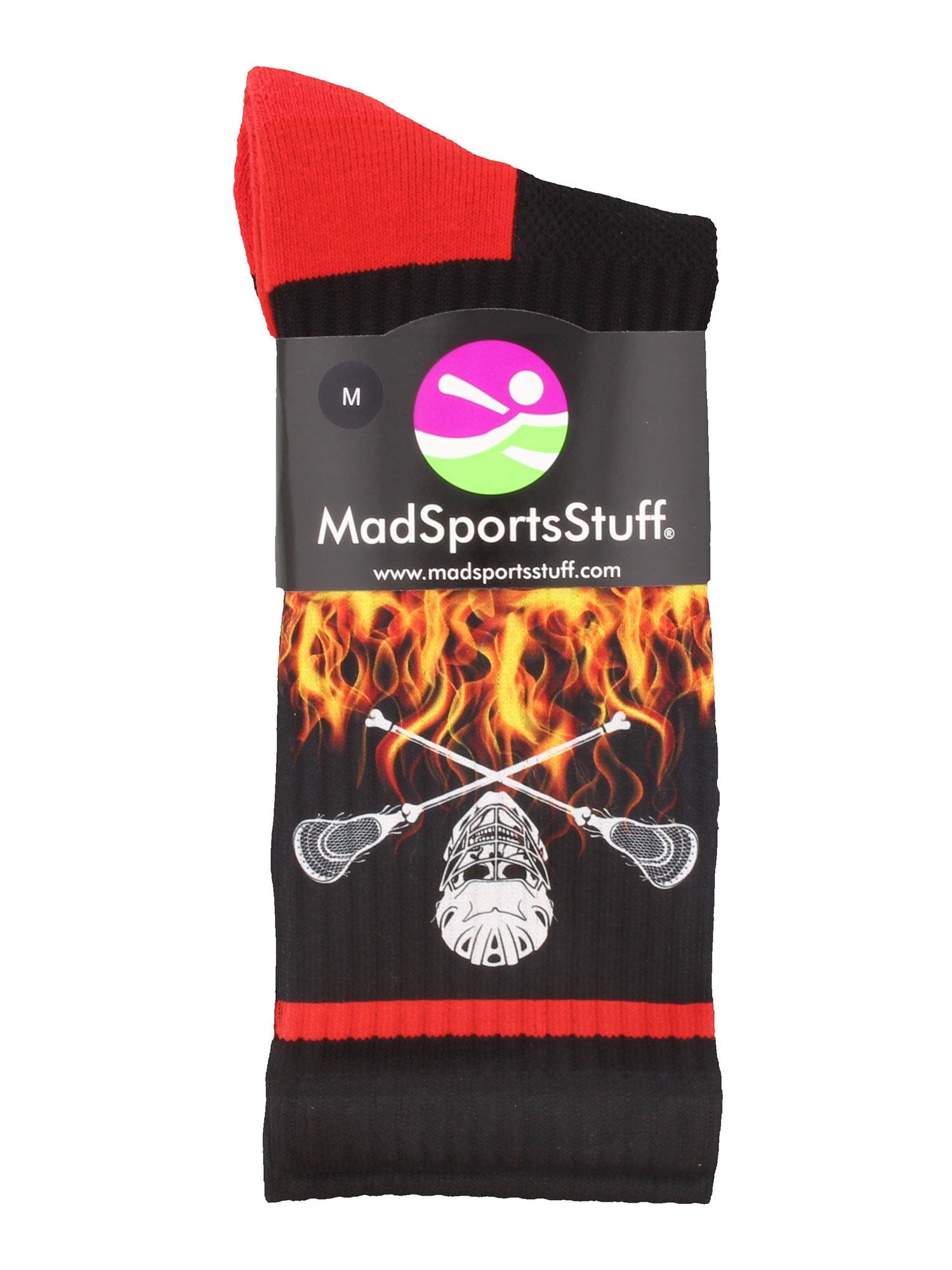 MadSportsStuff Flaming Skulls Lacrosse Sticks Athletic Crew Socks. High performance athletic socks for all team sports and elite athletes.