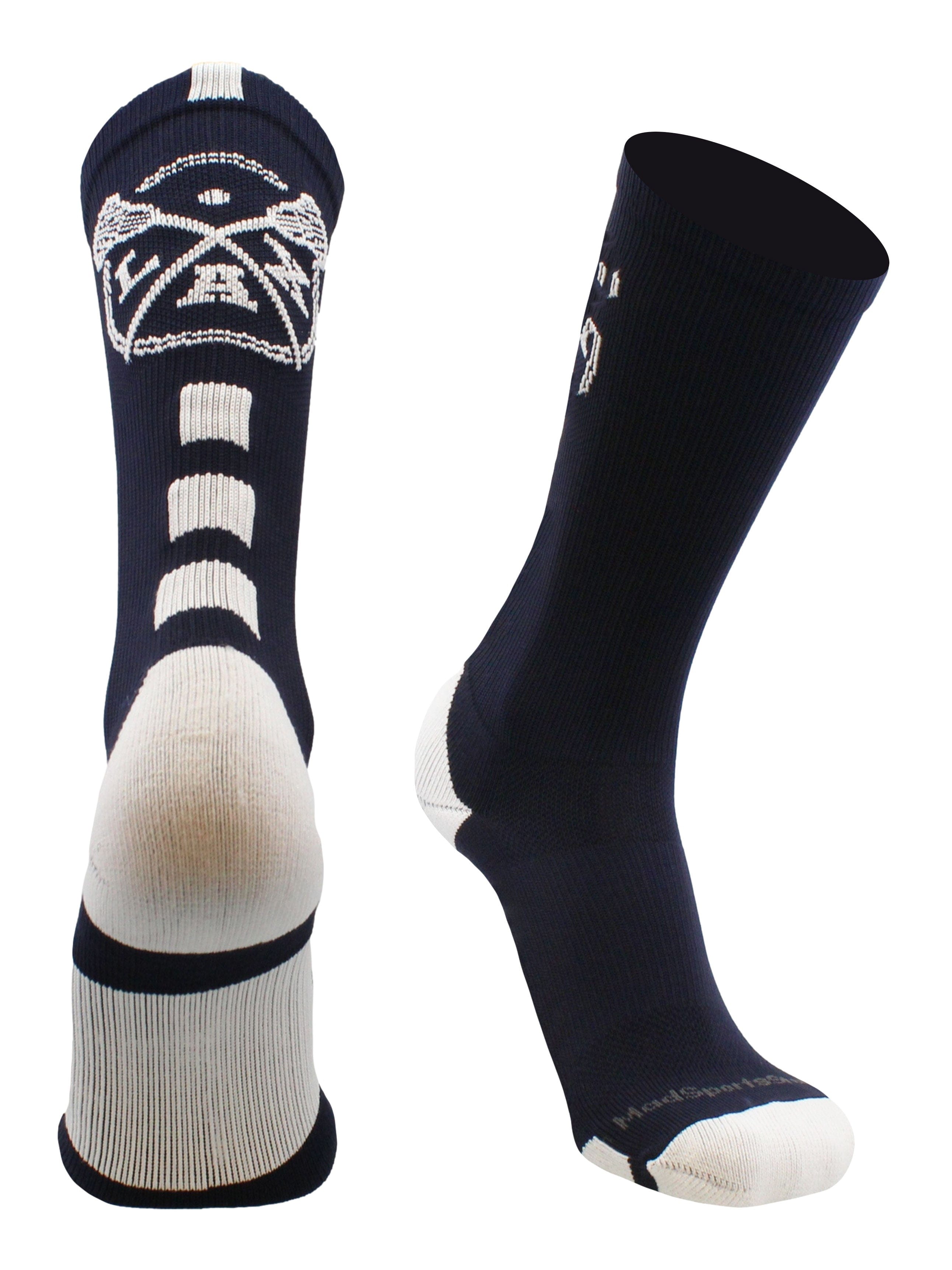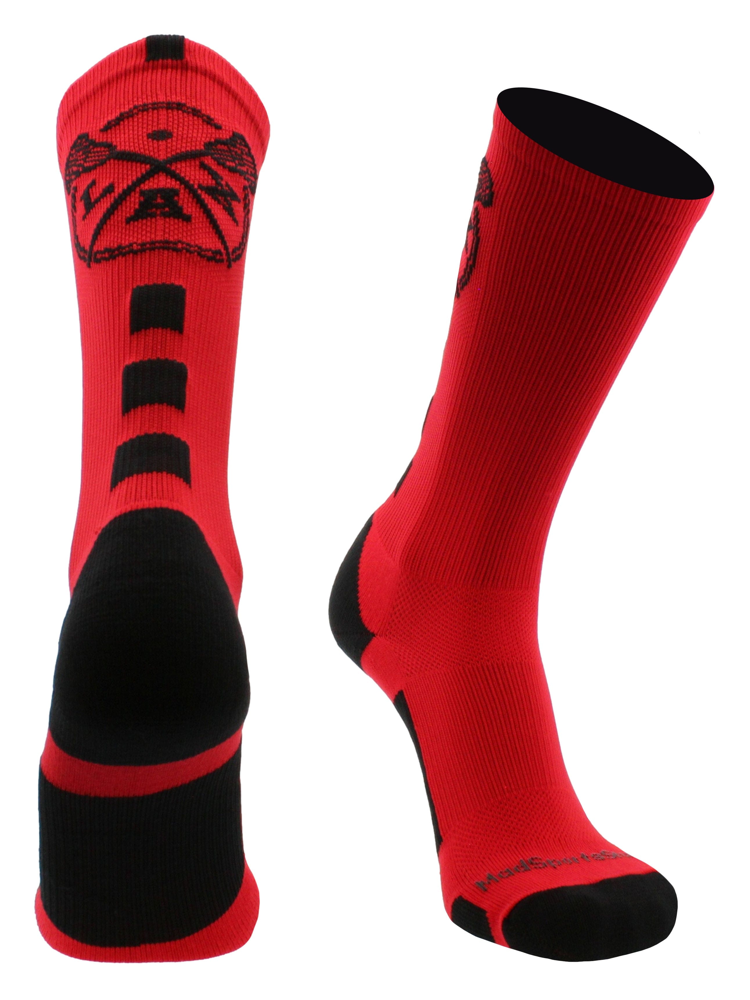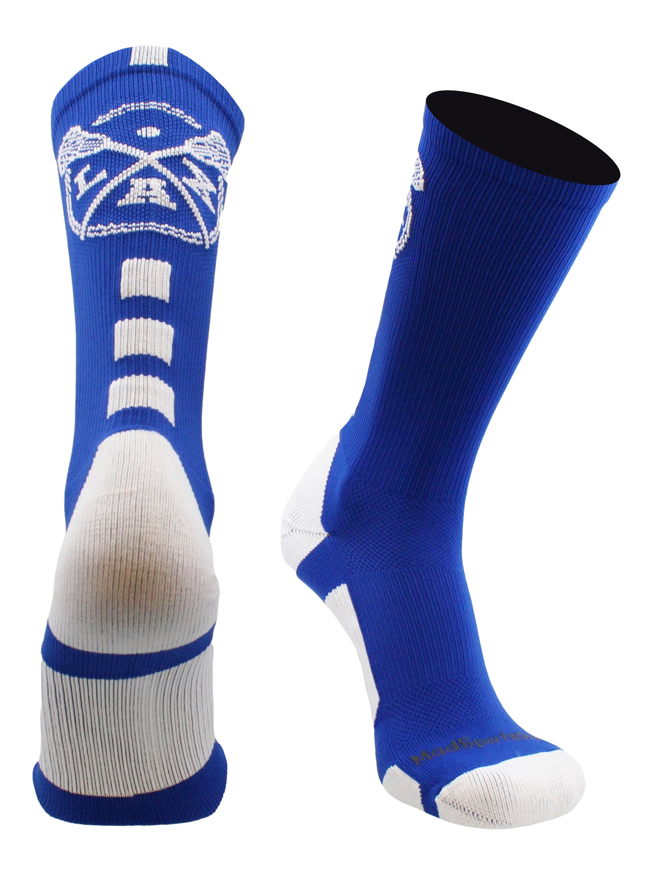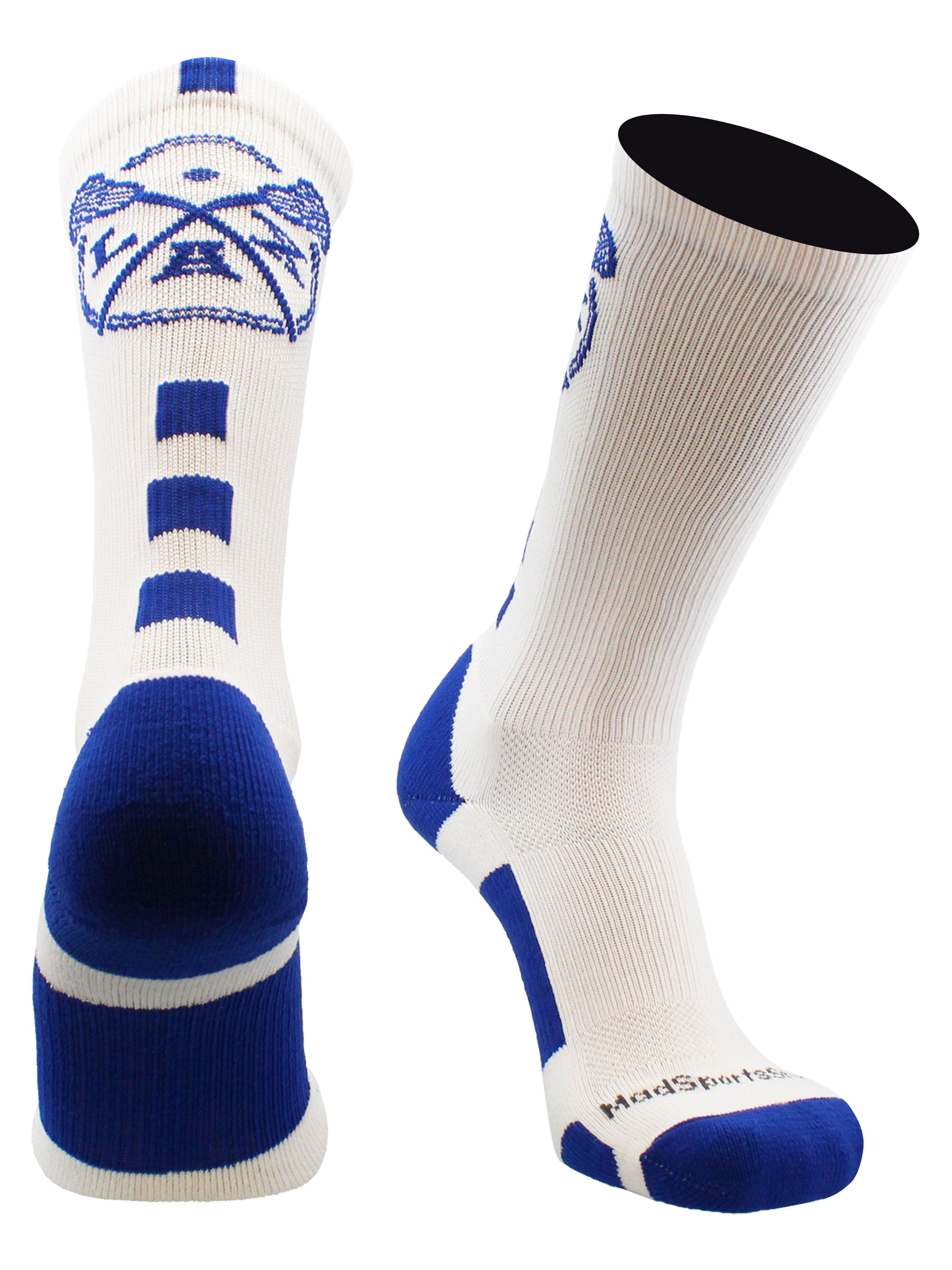 MadSportsStuff LAX Lacrosse Socks with Lacrosse Sticks Athletic Crew Socks. High performance athletic socks for all team sports and elite athletes. For boys or girls, great for teams and gifts!