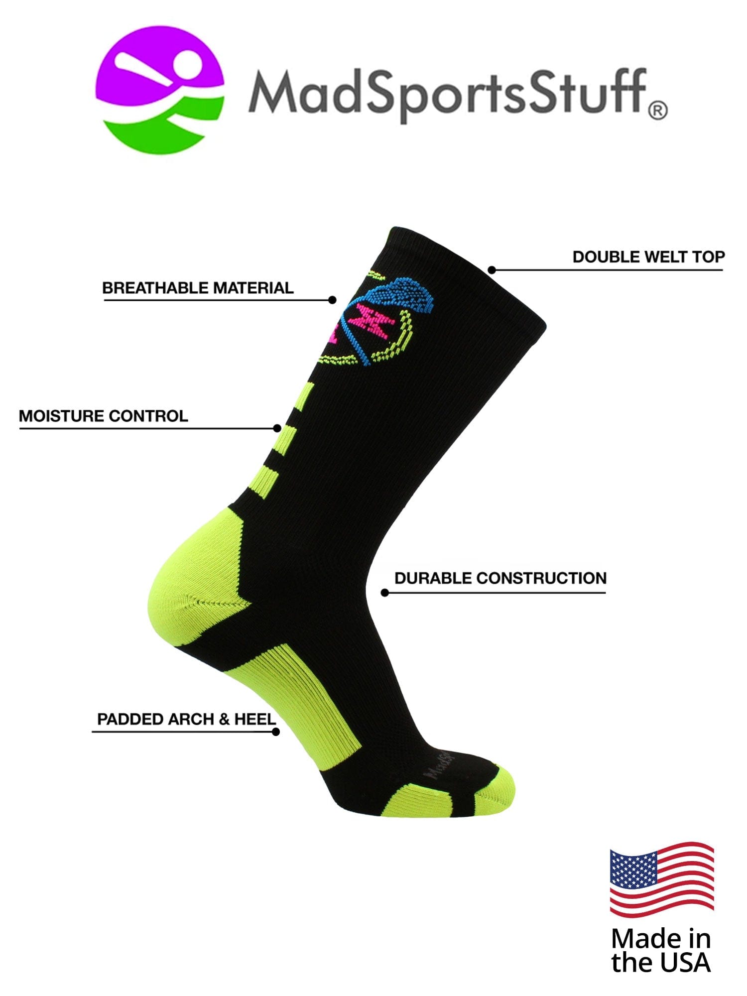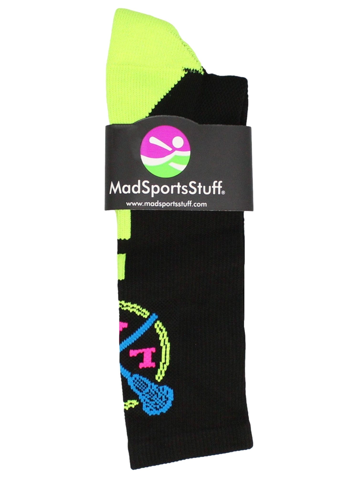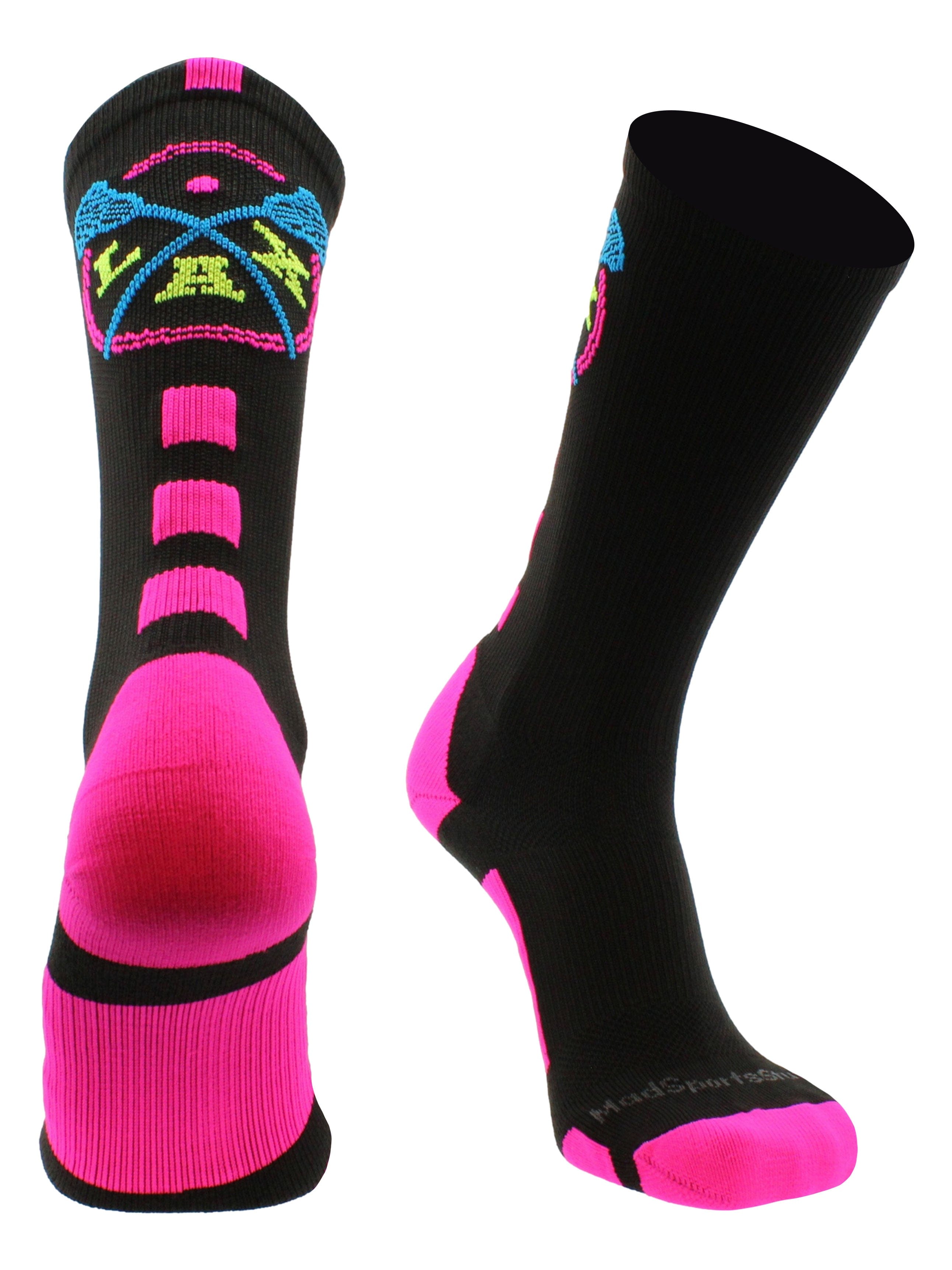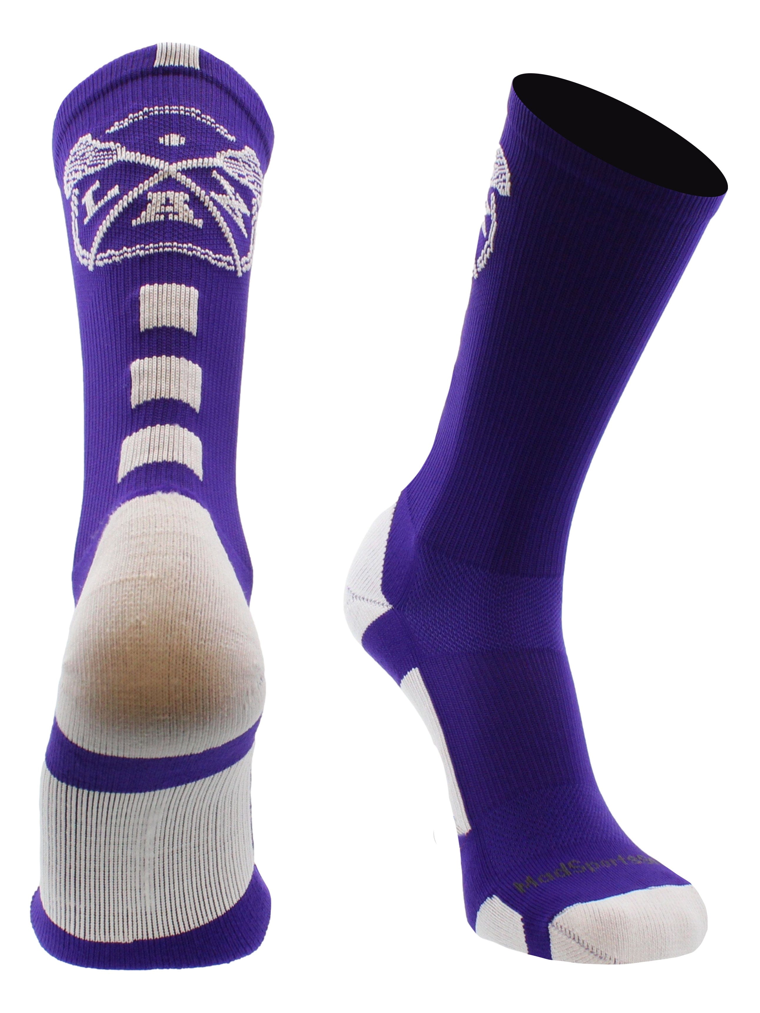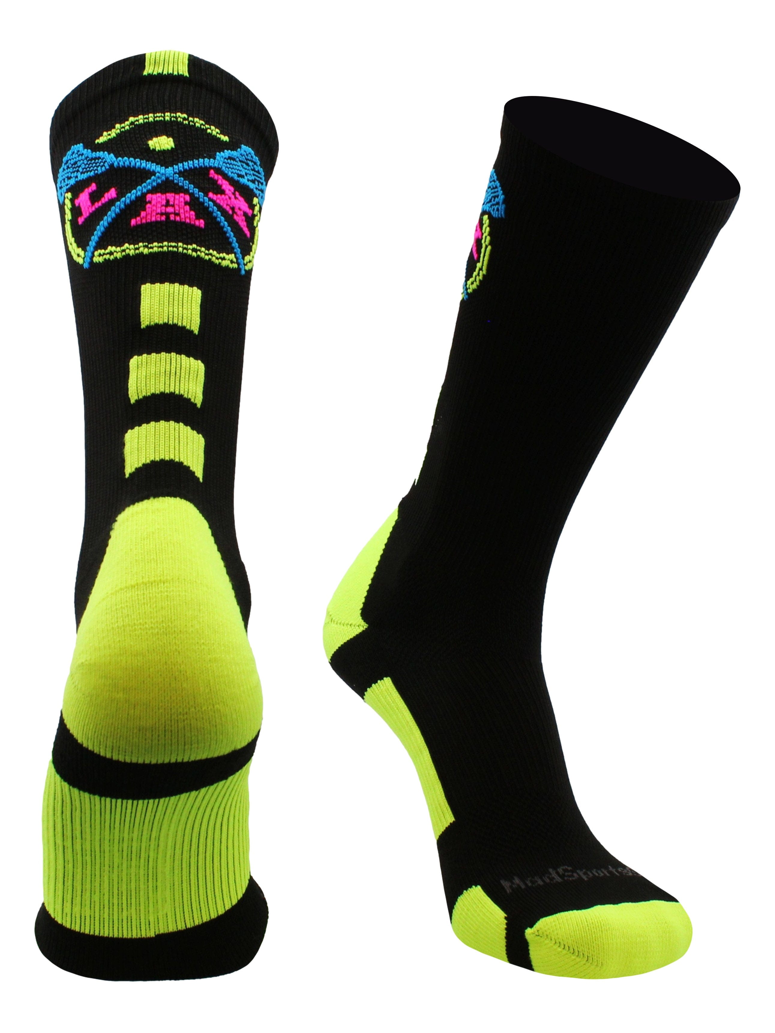 MadSportsStuff LAX Lacrosse Socks with Lacrosse Sticks Athletic Crew Socks. High performance athletic socks for all team sports and elite athletes. For boys or girls, great for teams and gifts!