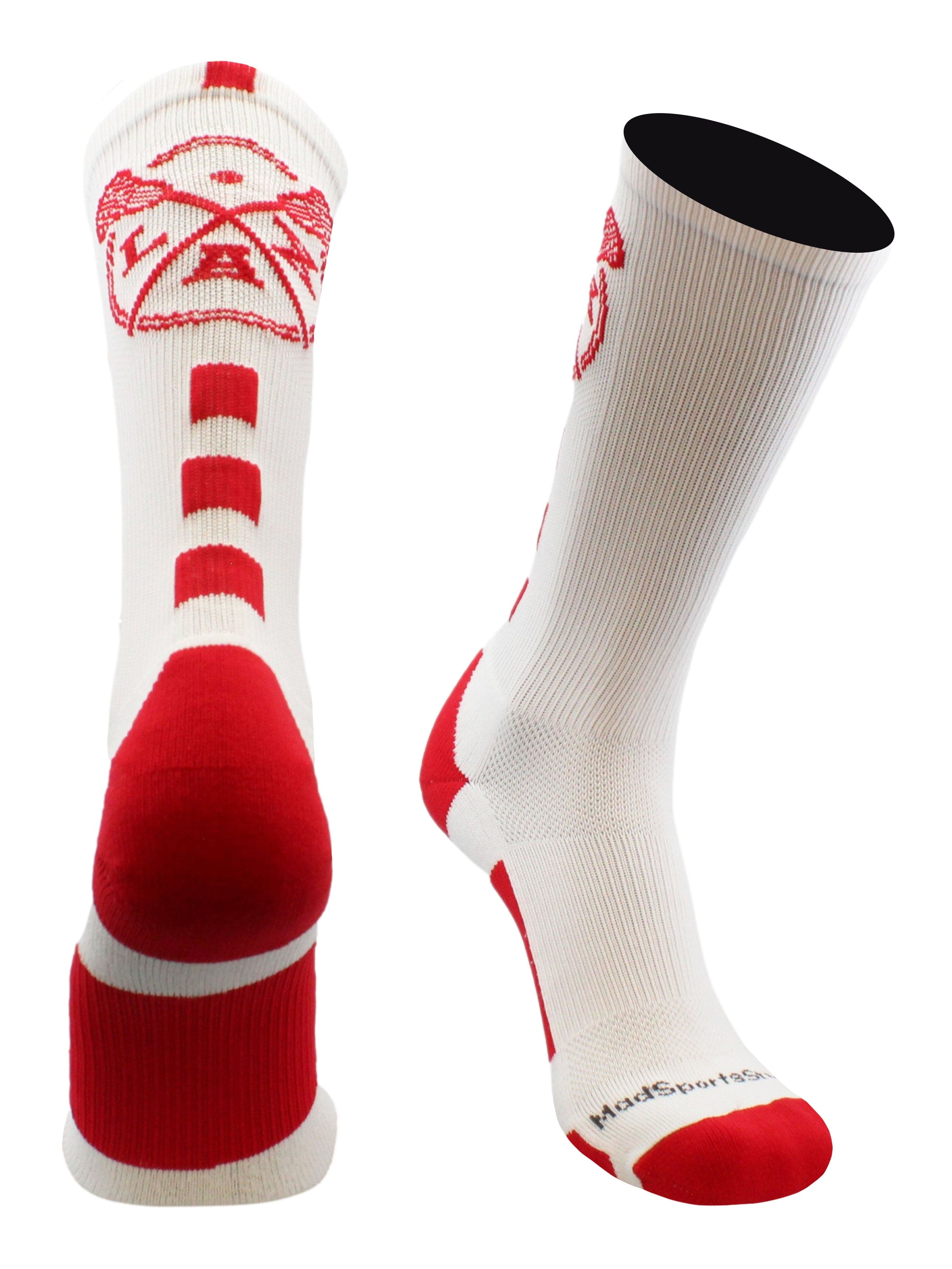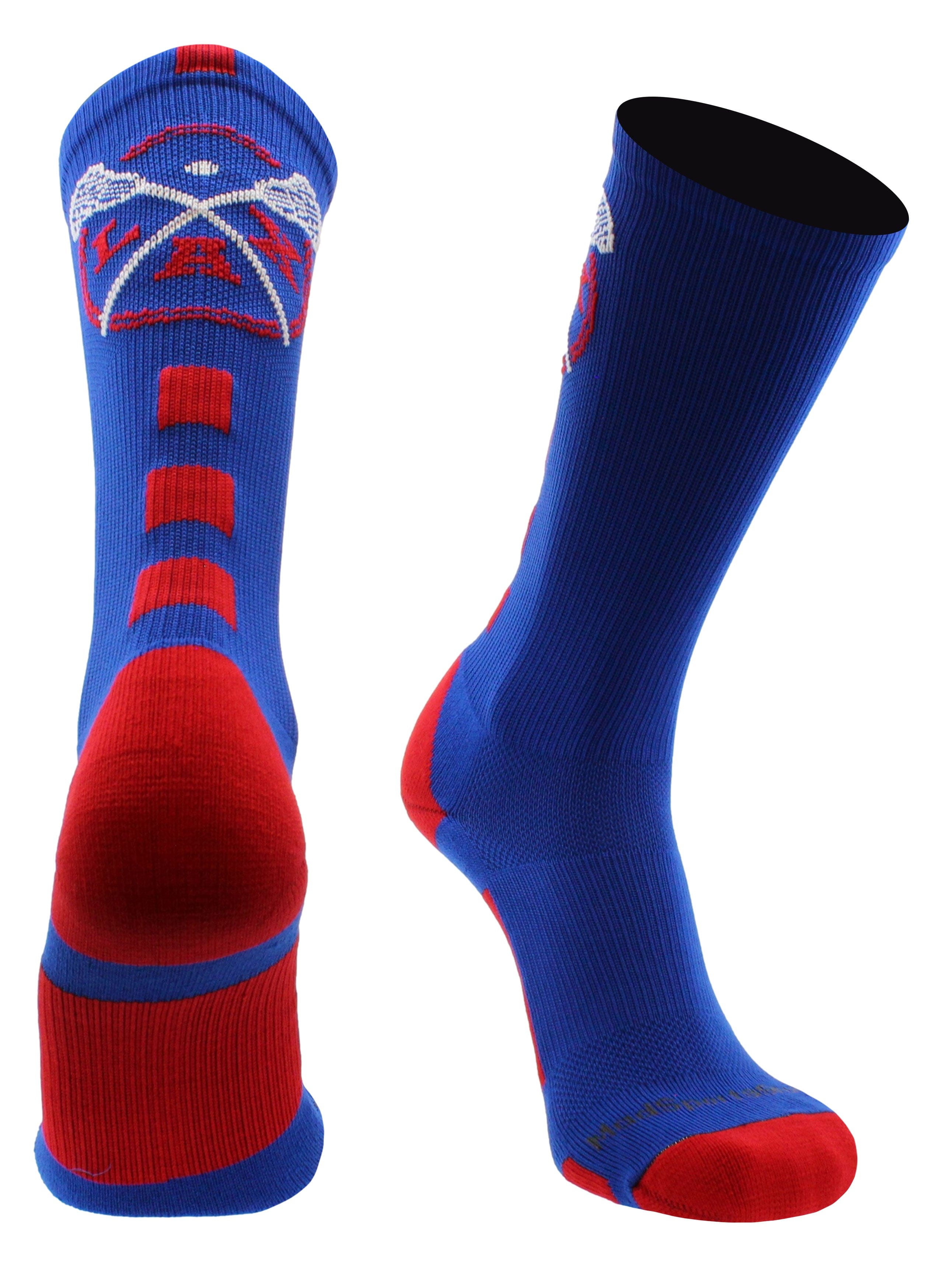 - PERFECT LACROSSE SOCKS: Add of a touch of fun to the season with this super cool LAX sock. This sock is a crew length (hits mid-calf) and comes in many team color combinations. Sure to be a hit with your favorite Lacrosse player!