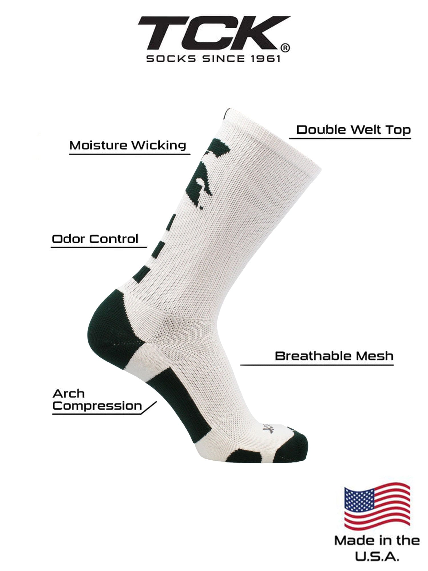 - COMFORT AND BREATHABILITY: These premium quality Michigan State Spartan socks provide soft comfort. Mesh panel ventillation above the foot allows for proper air flow. Keeping the feet dry. Moisture management technology pulls away moisture from skin.