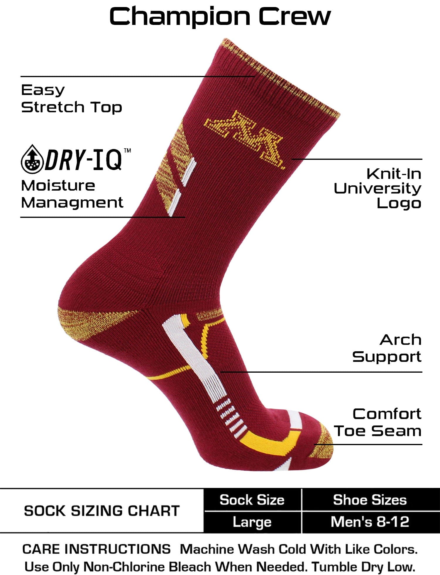 Minnesota Golden Gophers Socks University of Minnesota Golden Gophers Champion Crew Socks