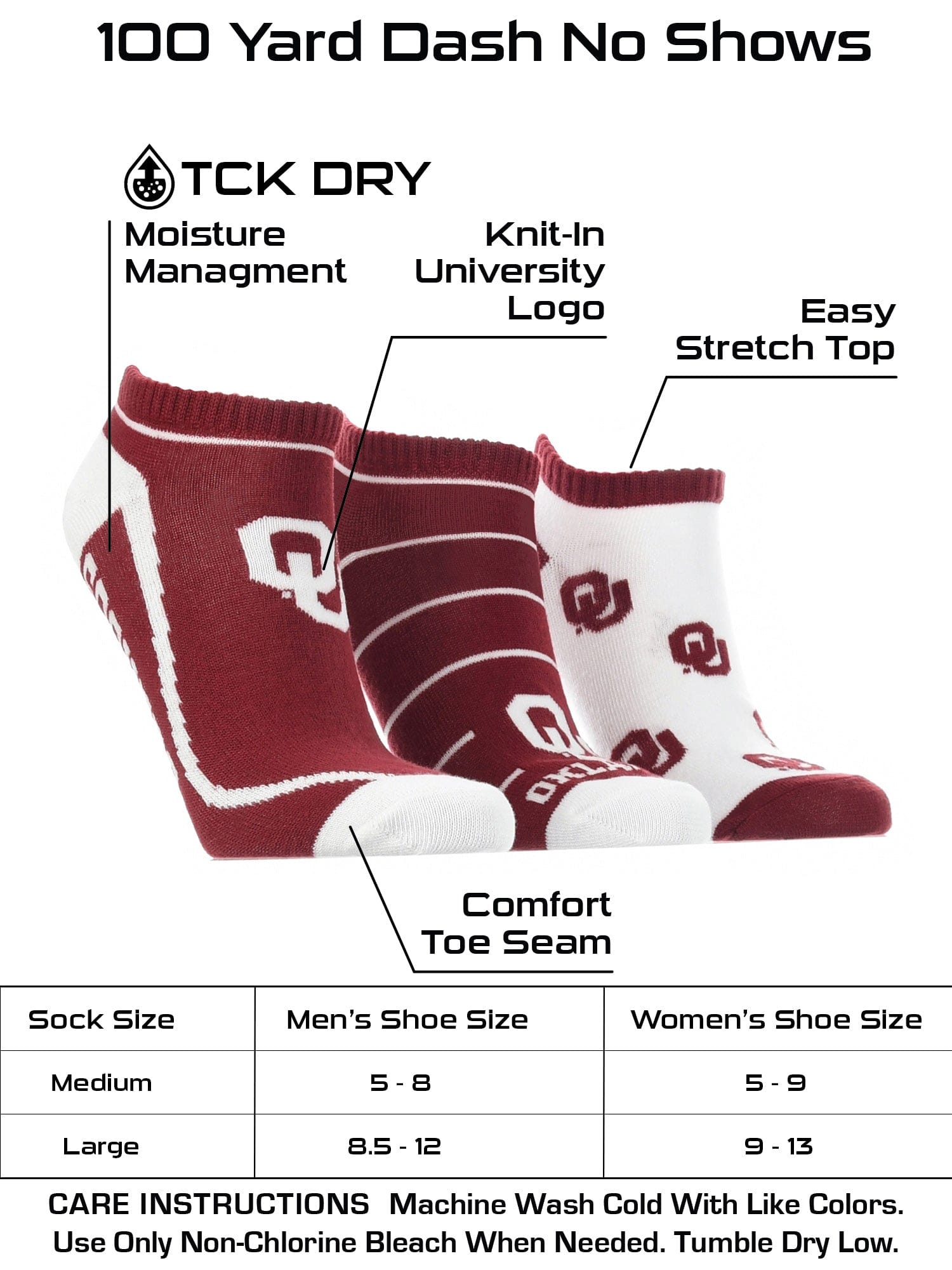Oklahoma Sooners No Show Socks Full Field 3 Pack