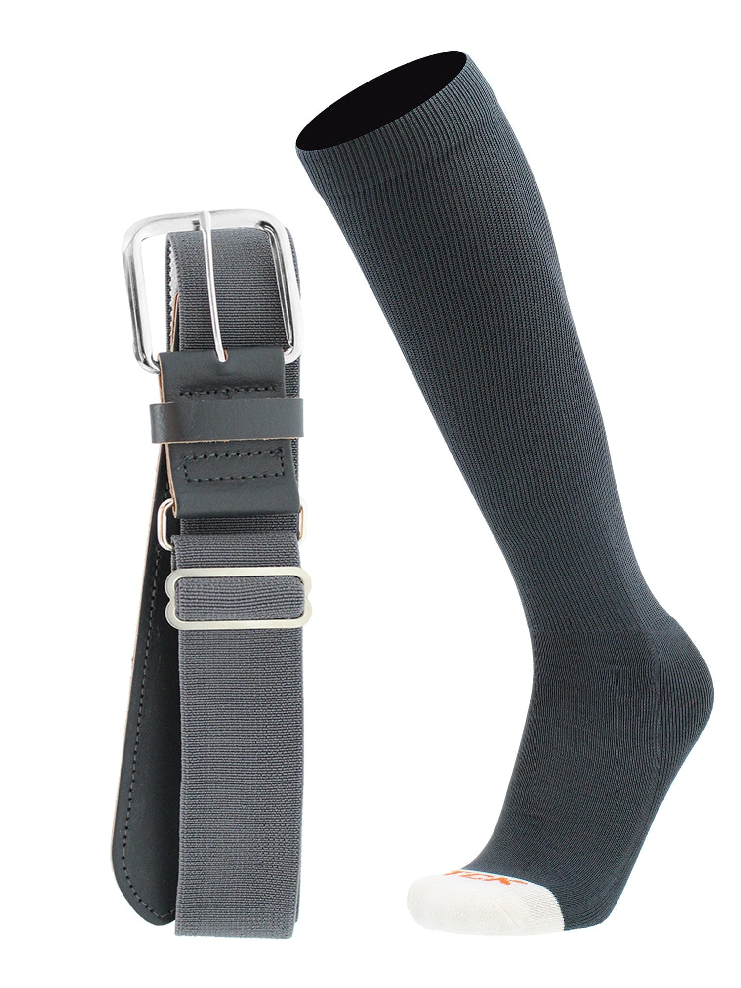 - INTEGRATED COMBO SIZING: Small socks come paired with a Youth size belt (1.25" wide; 18-32" waist), while all other sock sizes include an Adult size belt (1.5" wide; 30-46" waist).