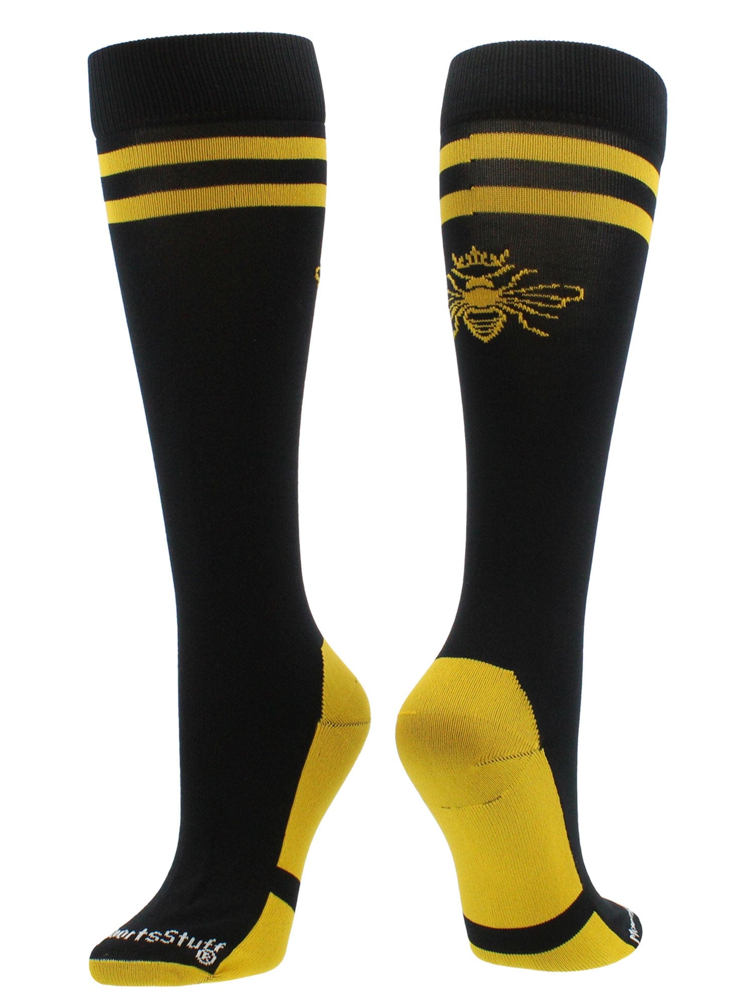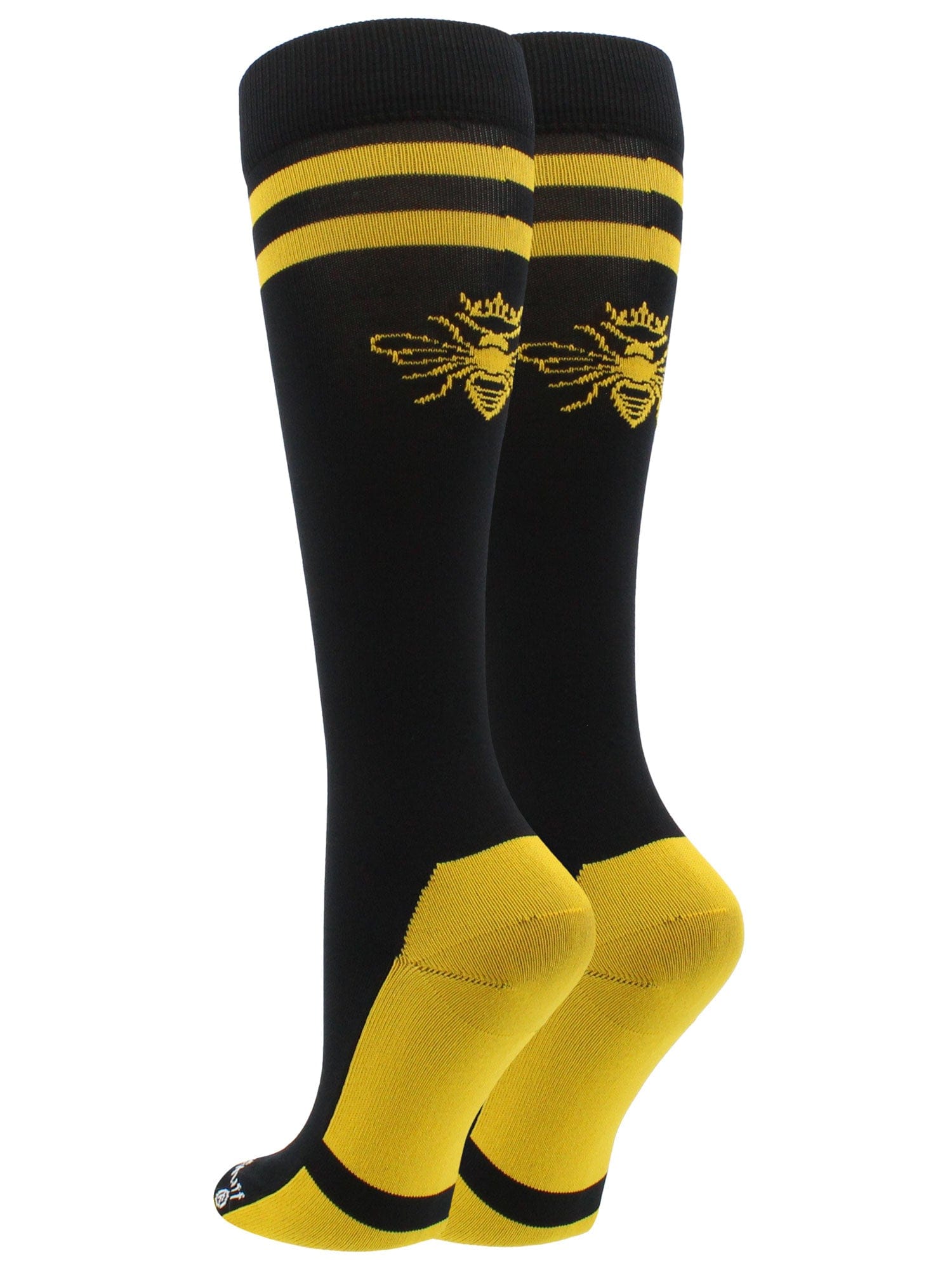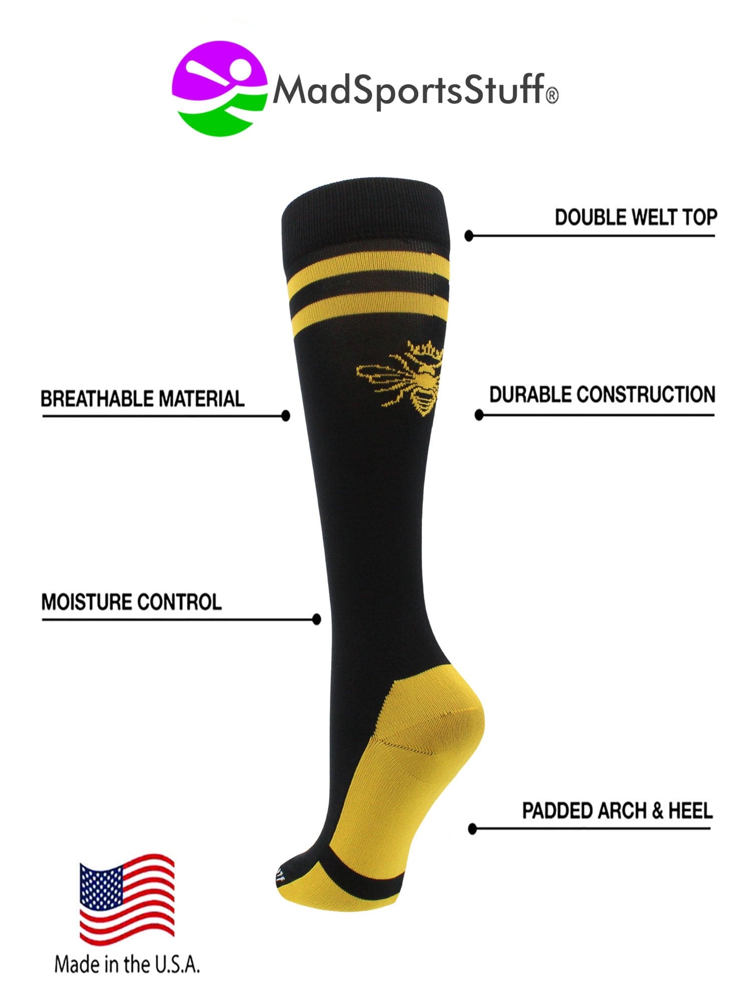 MadSportsStuff Queen Bees Softball socks and Soccer socks. High performance long sports socks for softball or soccer. Available in girls and womens sizes. Perfect for team socks or team gifts.