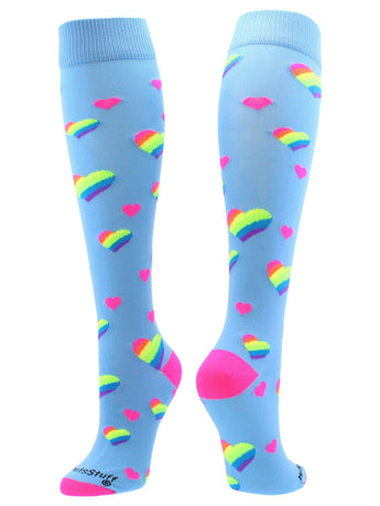 Rainbow Hearts Tall Socks for Soccer Softball