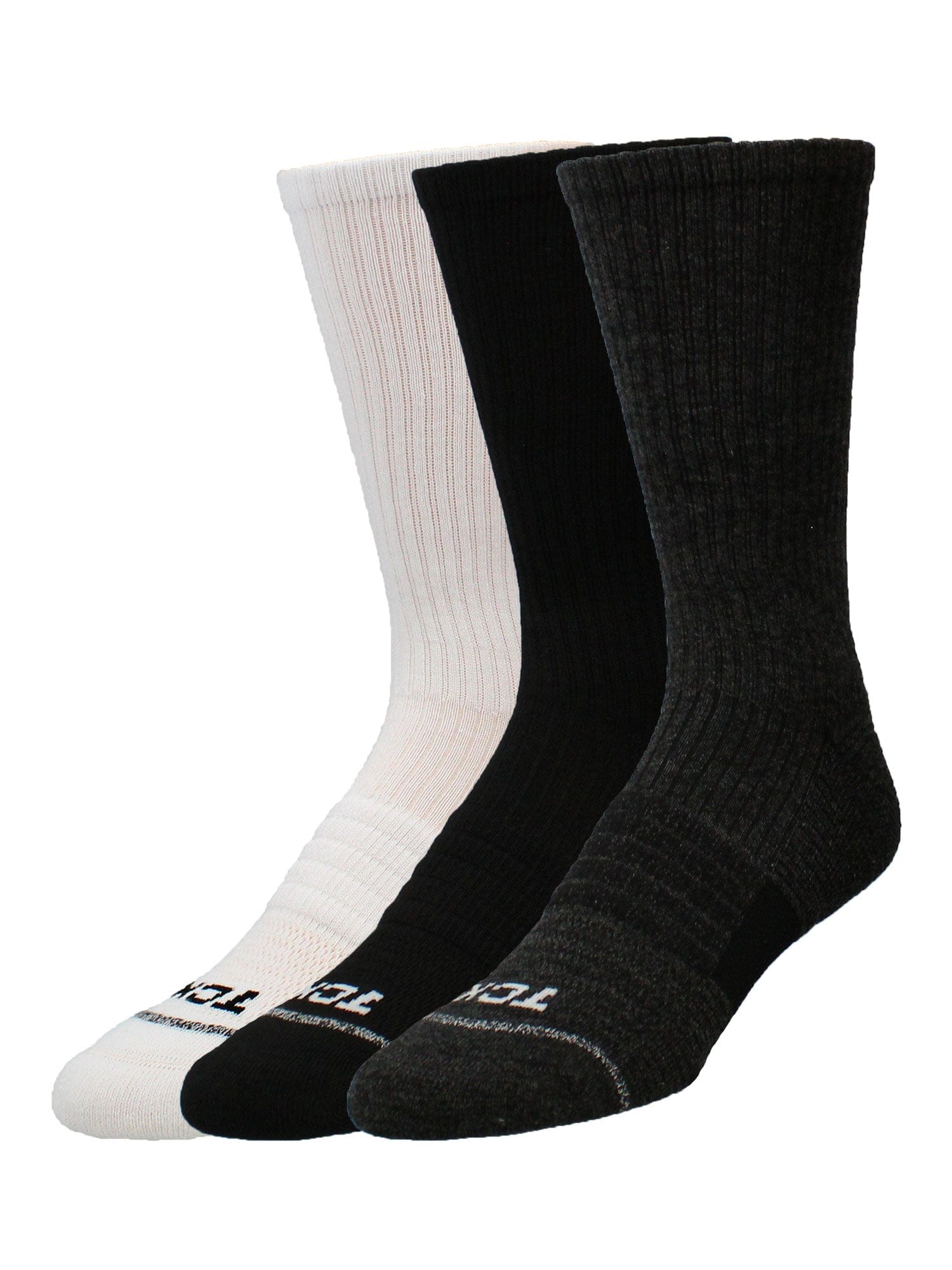 - SOCK & SIZING INFORMATION: This is a crew sock that comes as a multi-pack with 3 pair. Sizing as follows: Medium (Women's Shoe Size: 5-10. Men's Shoe Size 6-9) Large (Women's Shoe Size 10-13. Men's Shoe Size 9-12) X-Large (Men's Shoe Size 12-15). Made of high quality materials: 58% XS Repreve Polyester, 26% Polyester, 10% Nylon, 6% Spandex.