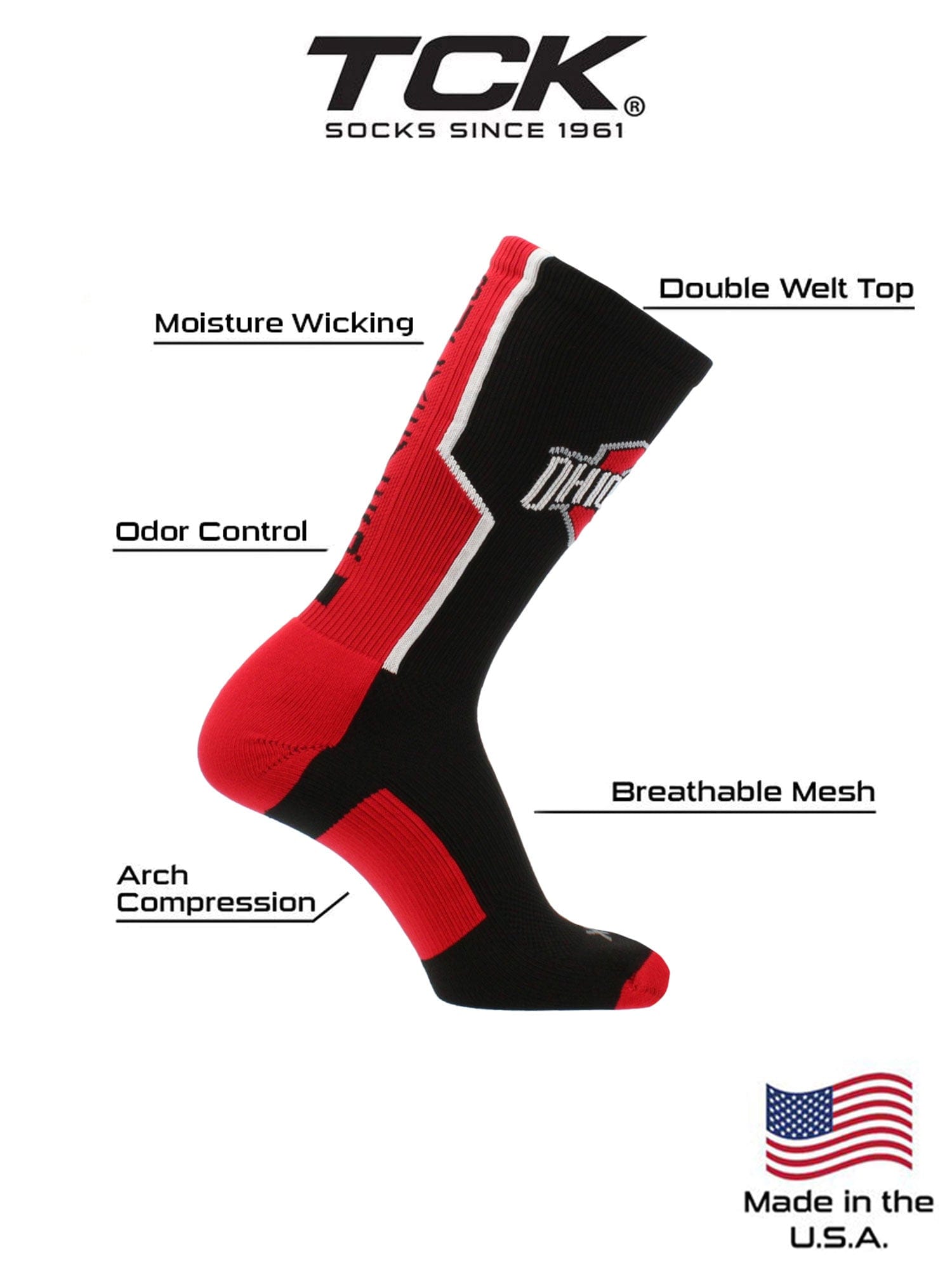 - COMFORT AND BREATHABILITY: These premium quality Ohio State Socks provide soft comfort. Mesh panel ventillation above the foot allows for proper air flow. Keeping the feet dry. Moisture management technology pulls away moisture from skin.