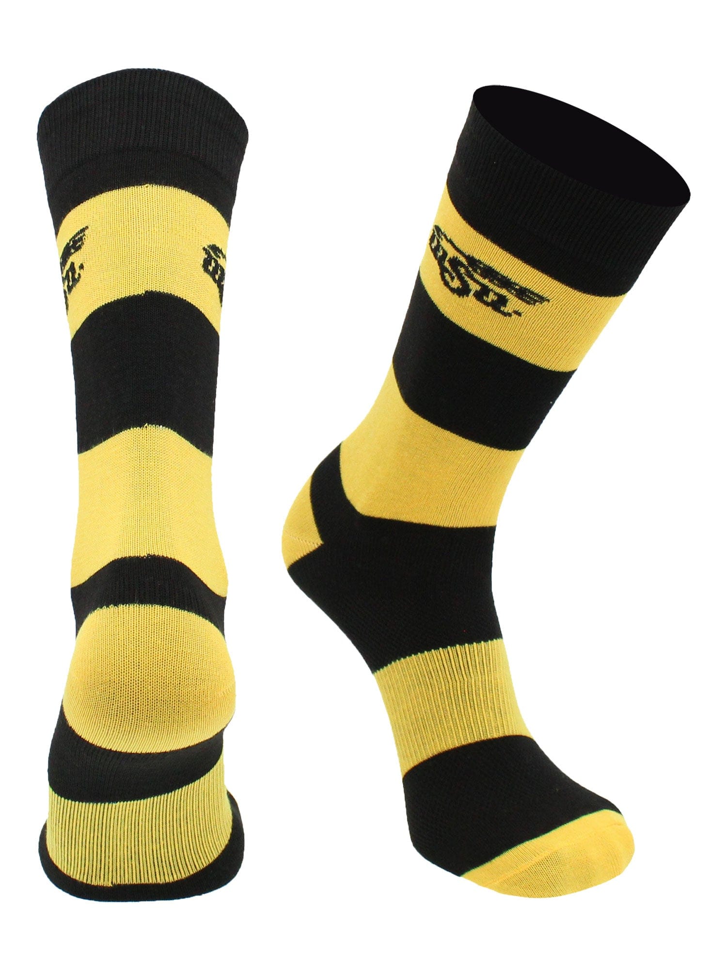 - COMFORT AND BREATHABILITY: These premium quality Wichita State Shockers striped dress socks provide soft comfort. Moisture management technology pulls moisture and sweat away from skin.