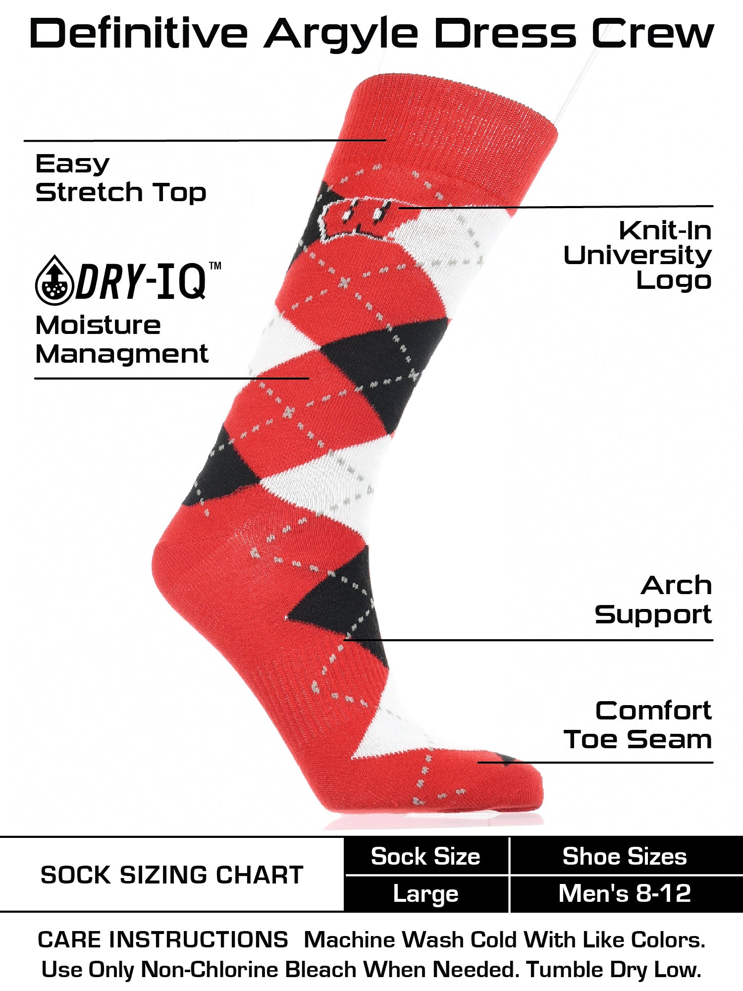 - COMFORT AND BREATHABILITY: These premium quality Wisconsin Badgers argyle dress socks provide soft comfort. Moisture management technology pulls moisture and sweat away from skin.