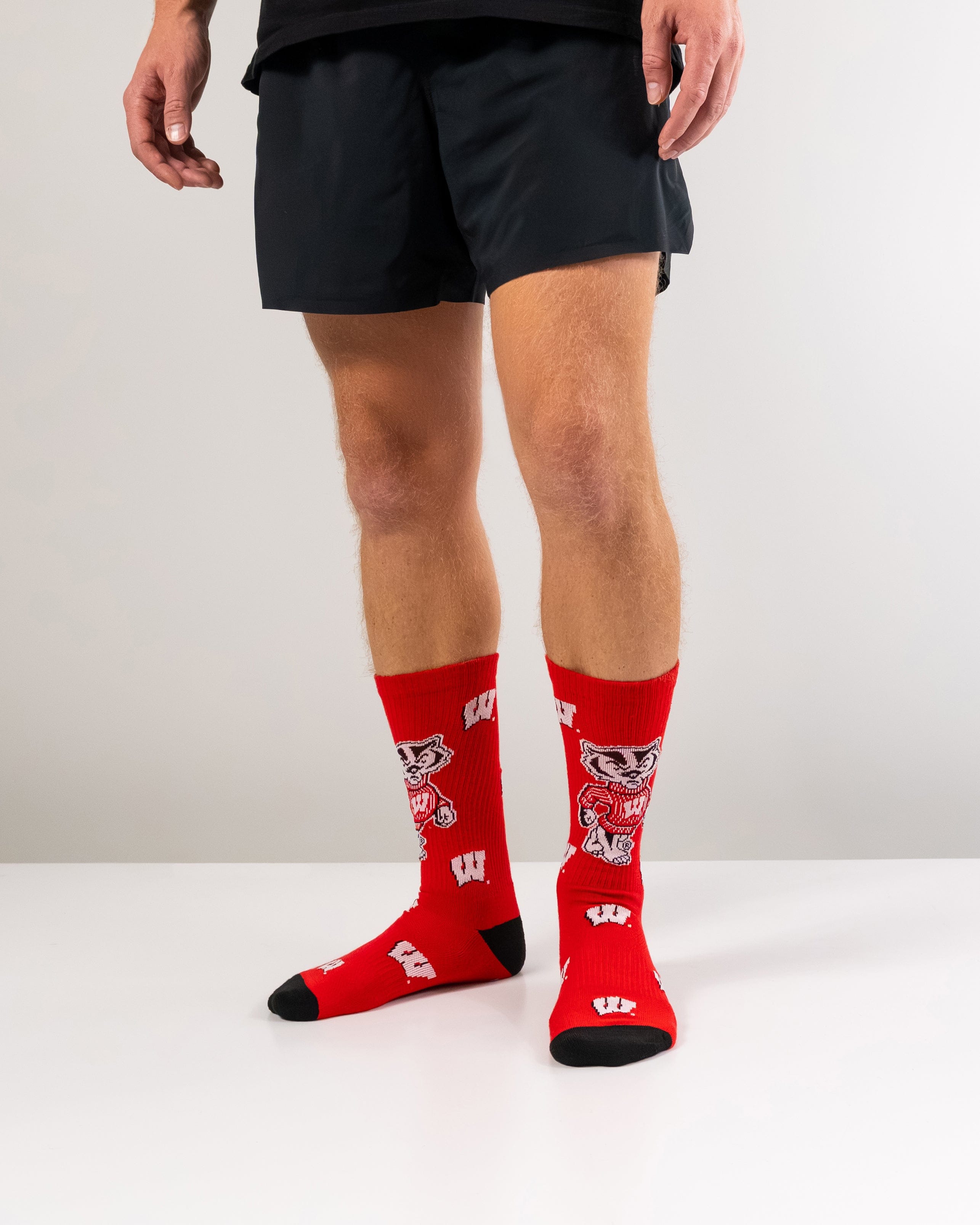 Step into the Mayhem and show off your Badgers pride with socks built for both spirit and performance. Whether you're hitting the gym or heading to class, these versatile socks pair perfectly with sneakers or slides. Designed for comfort, breathability, and durability, they make a great gift for Father’s Day, birthdays, back-to-school, or stocking stuffers. Made from a high-quality blend of 94% Polyester, 4% Rubber, and 2% Spandex