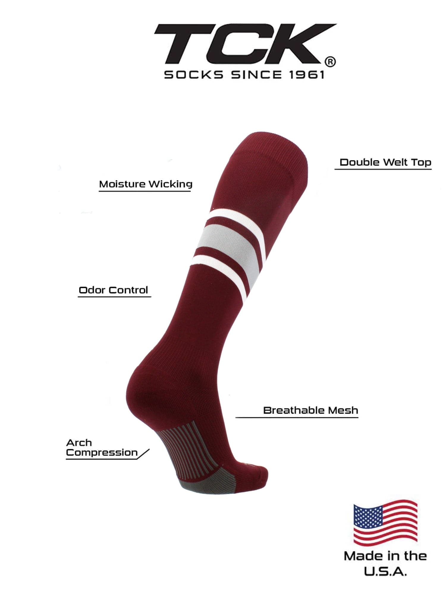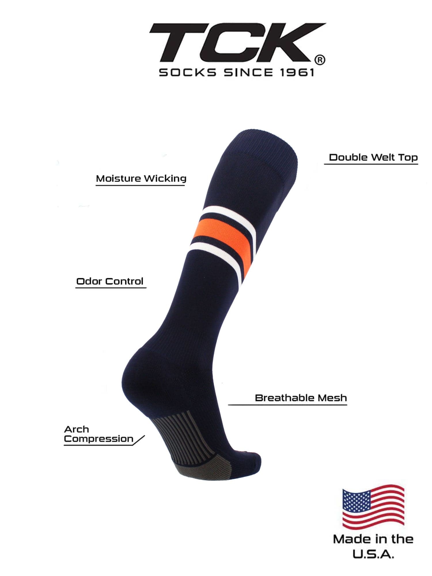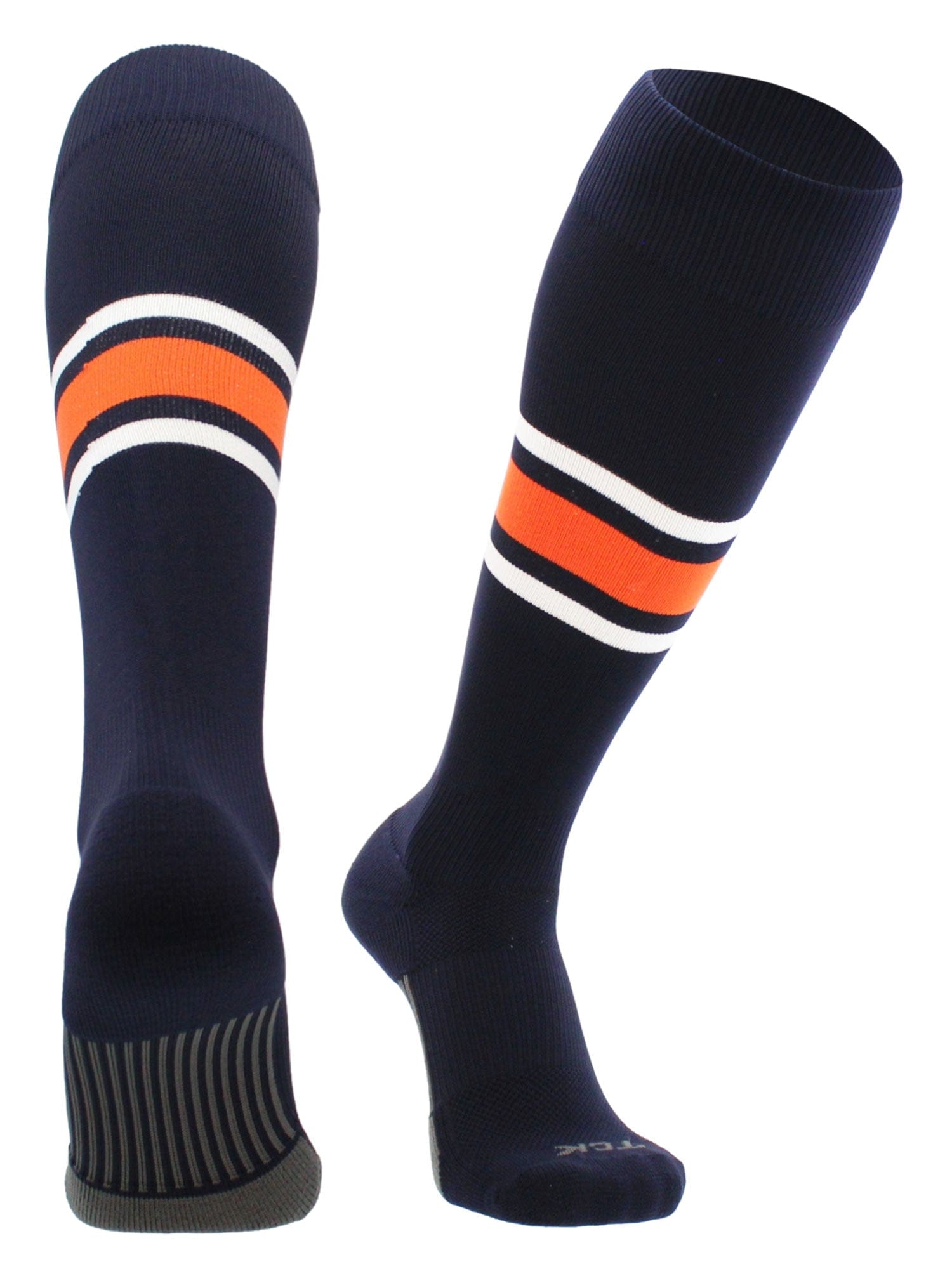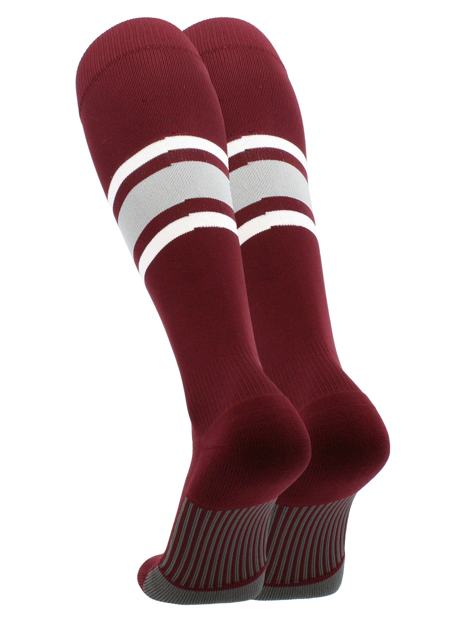 - PERFECT BASEBALL or SOFTBALL SOCKS: MadSportsStuff created world class baseball socks in a classic 3 stripe design and over the calf length. These baseball socks are offered in classic team colors and are sure to be a hit with your favorite baseball or softball player! These are also an excellent choice for team socks.