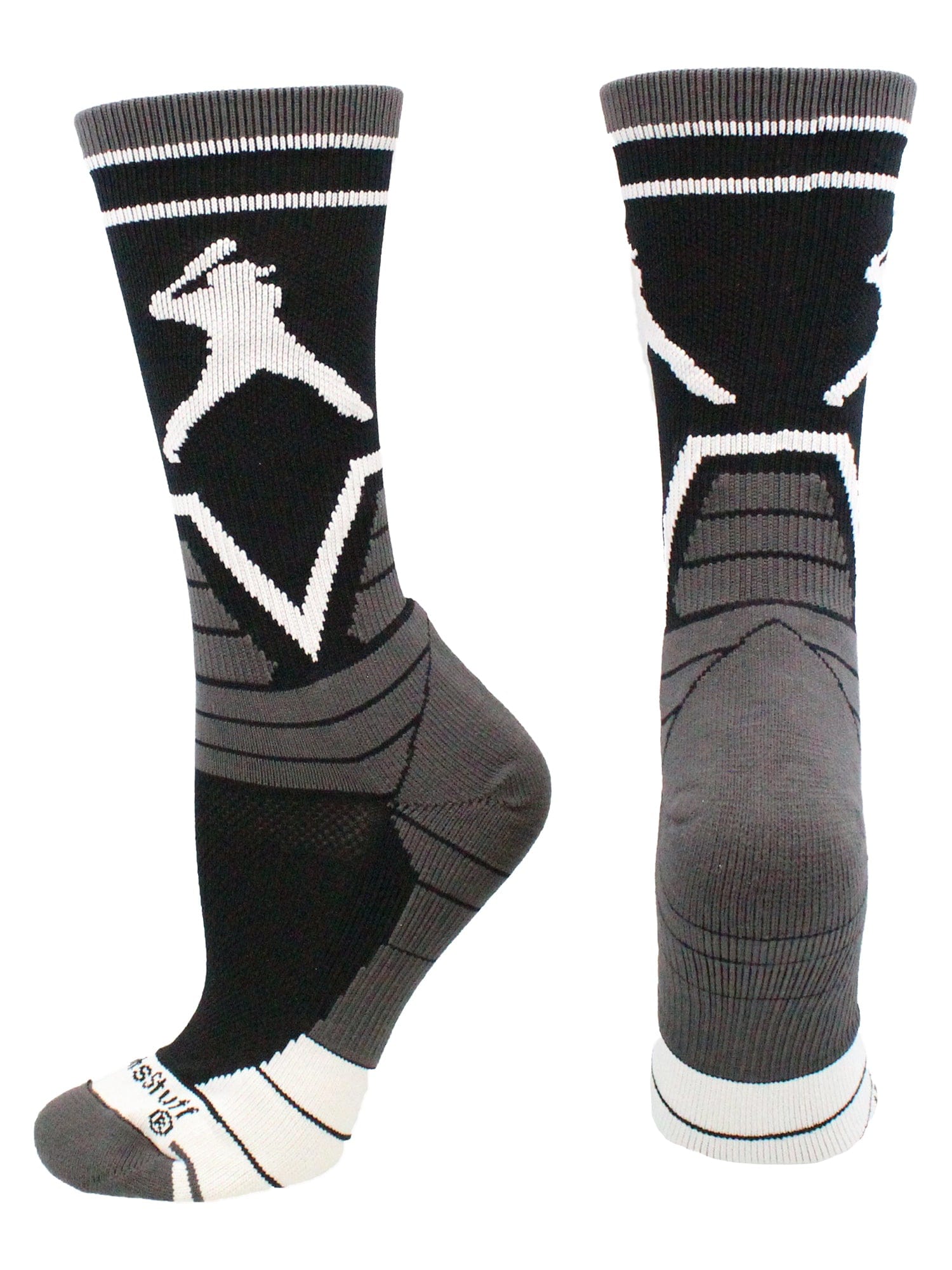 - PERFECT BASEBALL SOCKS: Show your enthusiasm for baseball with these classic crew socks featuring a baseball player! These elite baseball socks are great for men, women, boys or girls and make a perfect gift!
