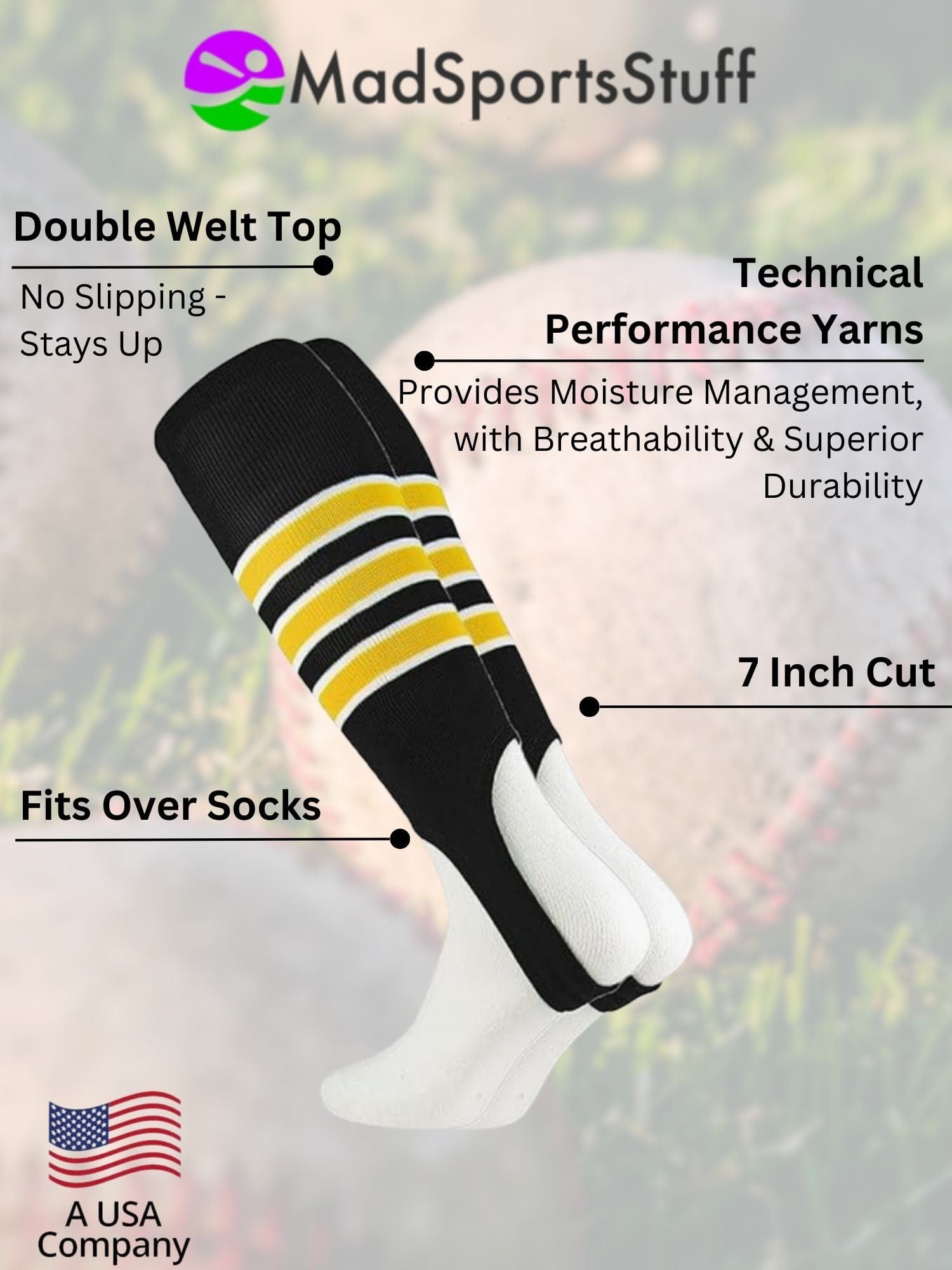 - ADDITIONAL DETAILS: Standard baseball stirrup profile, fits over athletic socks (socks not included). ***NOTE- Please be aware any products produced with stripes (Socks or Stirrups) WILL have an overlap/stairstep stitching area on every stripe. This is inherent to the knitting process and is unavoidable. Please note this is NOT a defect in the product. These baseball stirrups are the same baseball stirrups worn on the field by many elite players and the overlap is rarely noticed.***