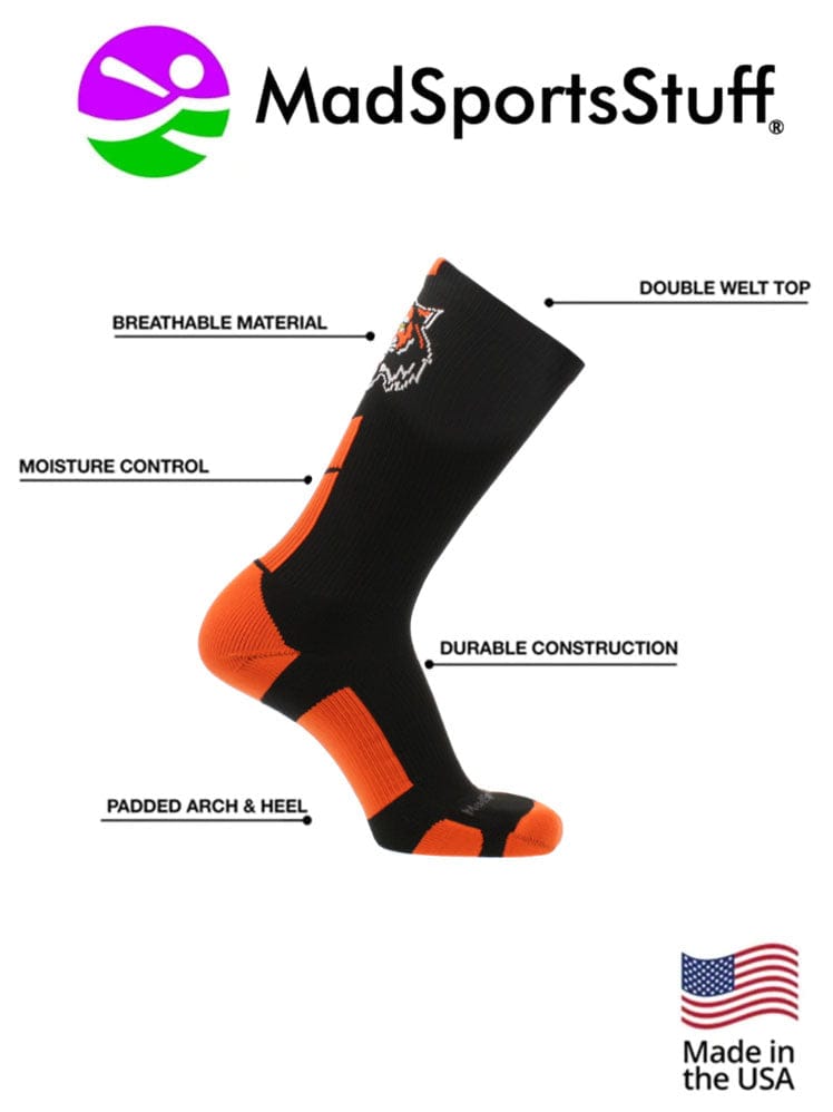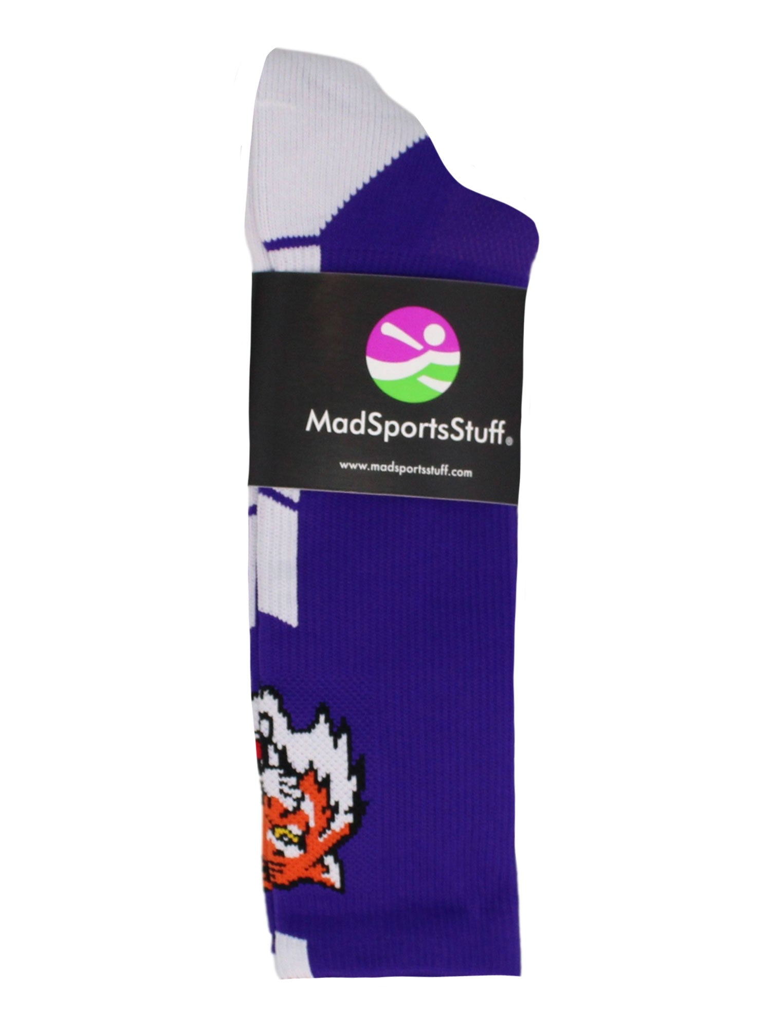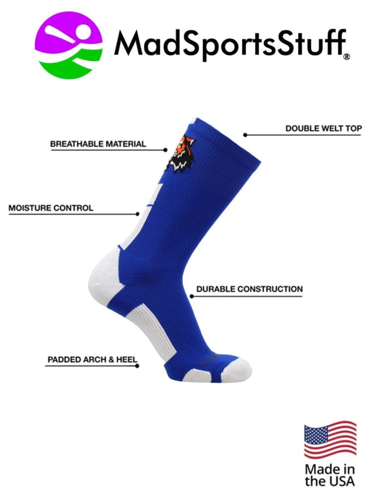 MadSportsStuff Tigers Logo Athletic Crew Socks. High performance athletic socks for all team sports and elite athletes.