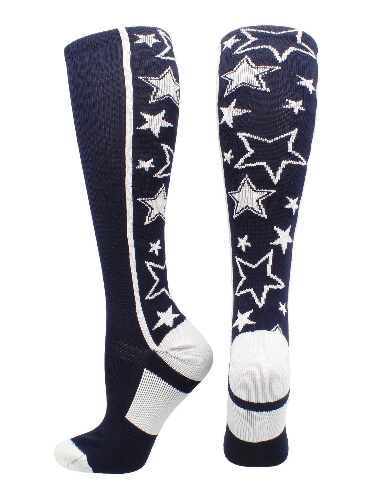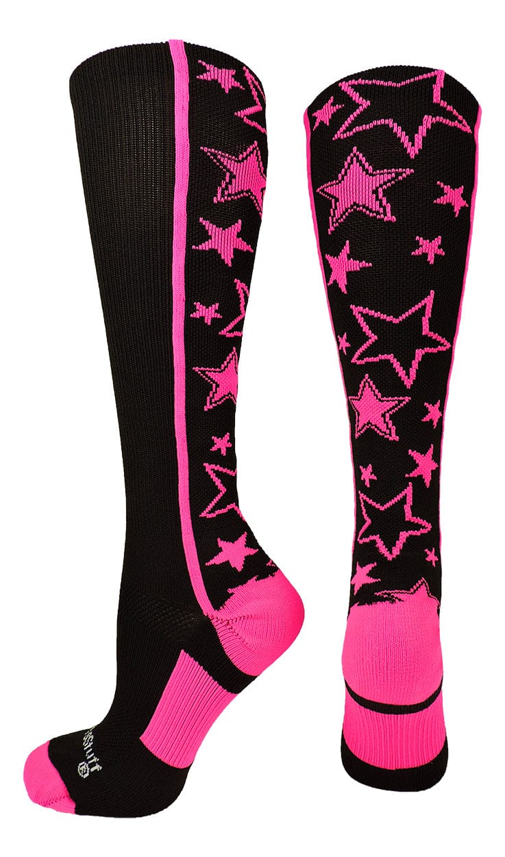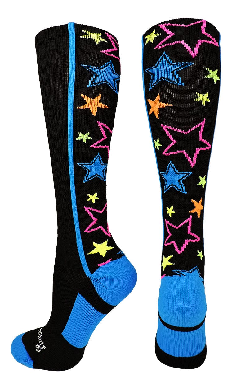 MadSportsStuff Crazy Stars Over the Calf Socks. High performance athletic socks for all team sports and elite athletes. Great for teams! Ideal for softball,baseball, lacrosse, basketball, field hockey, volleyball, wrestling, soccer, football, cheer, kickball and more!