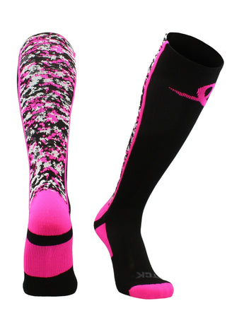 Digital Camo Aware Over the Calf Socks Pink Ribbon Softball Soccer Football