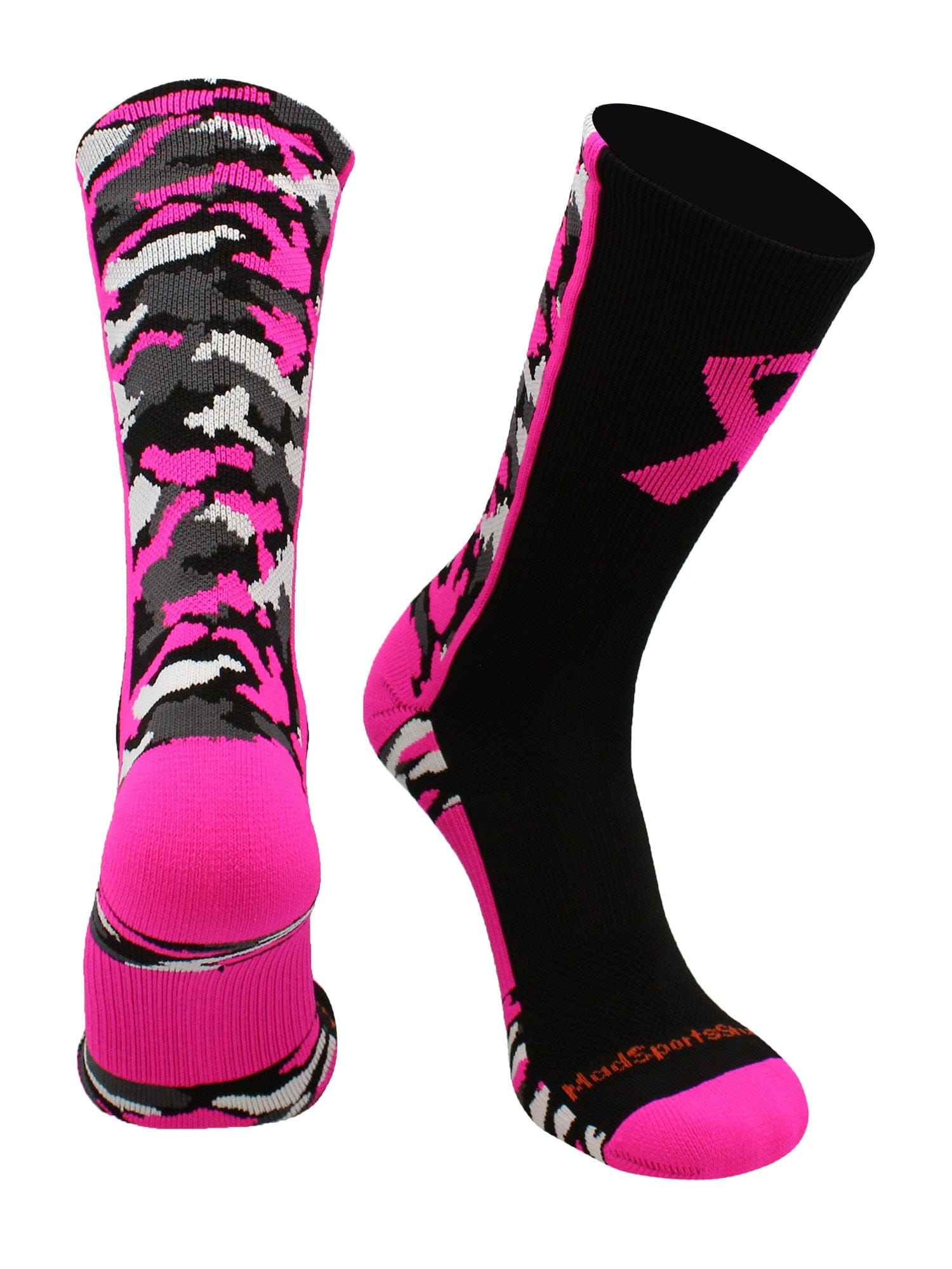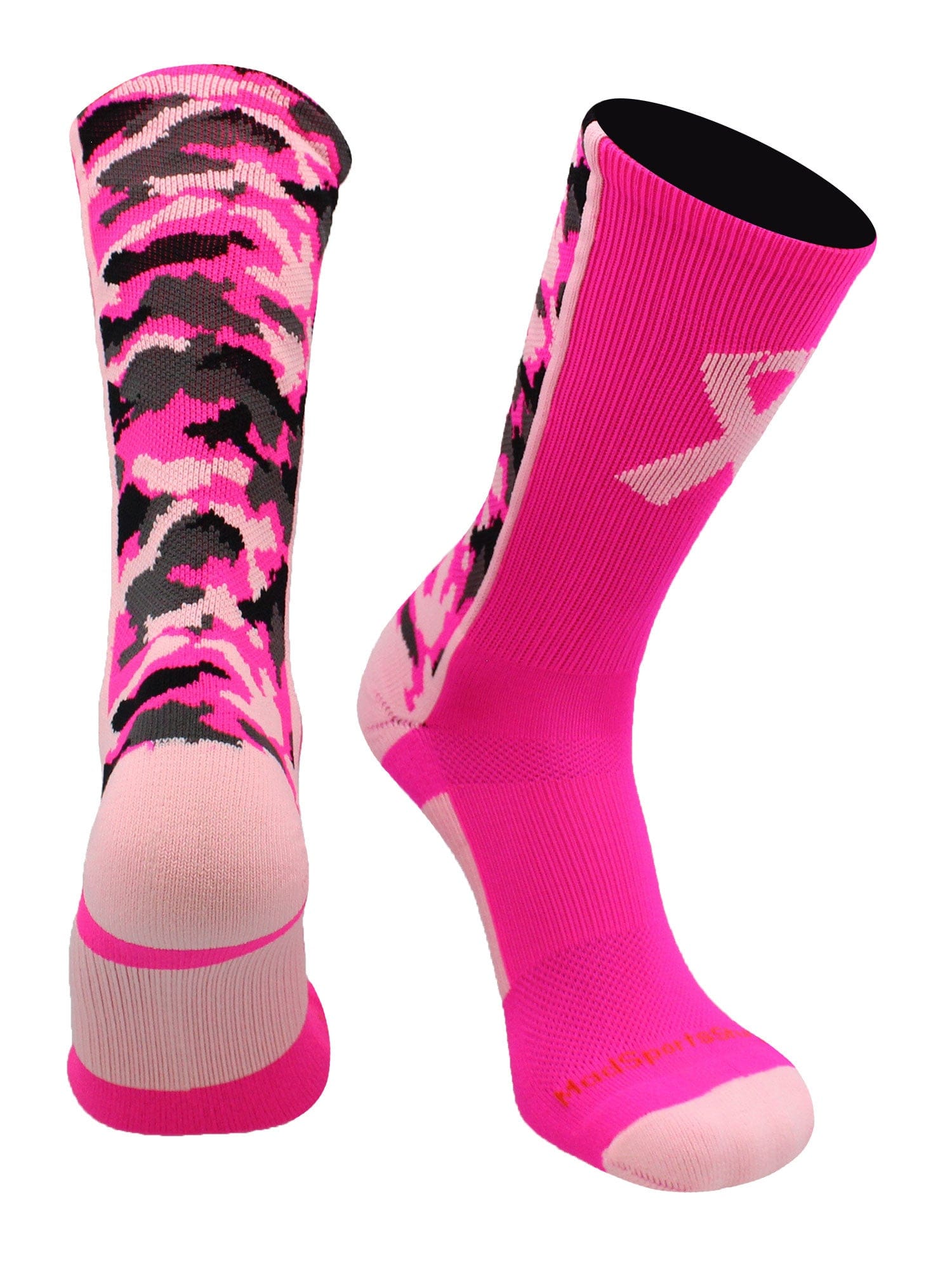 Pink Ribbon Breast Cancer Awareness Camo Athletic Crew Socks. High performance athletic socks for all team sports and elite athletes.