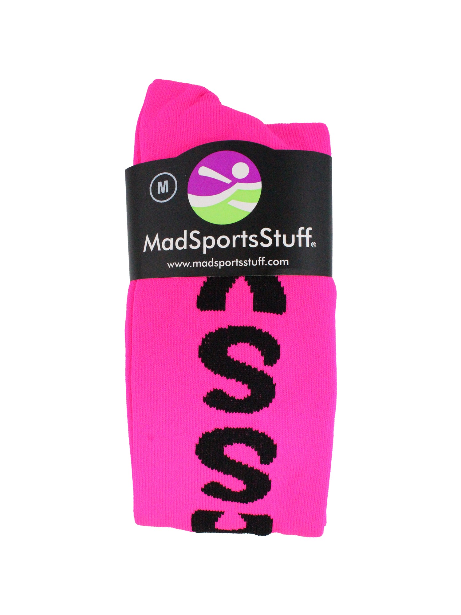 MadSportsStuff Personality Word Socks Over the Calf Length Athletic Socks. These crazy word socks help your young athlete express their personality on and off the field!! For boys or girls, teams and gifts. Ideal for softball, baseball, lacrosse, basketball, wrestling, soccer, football, kickball and more!