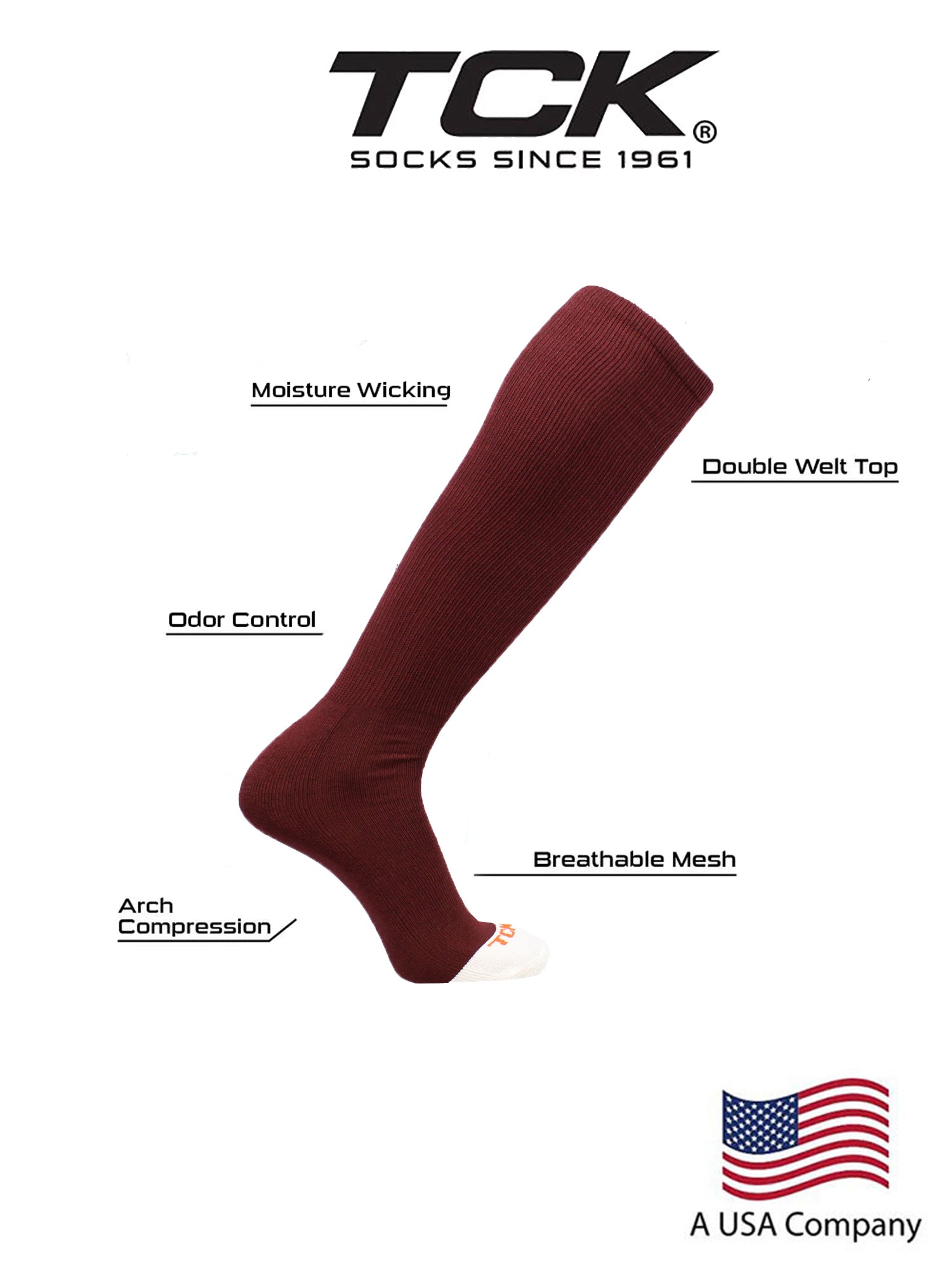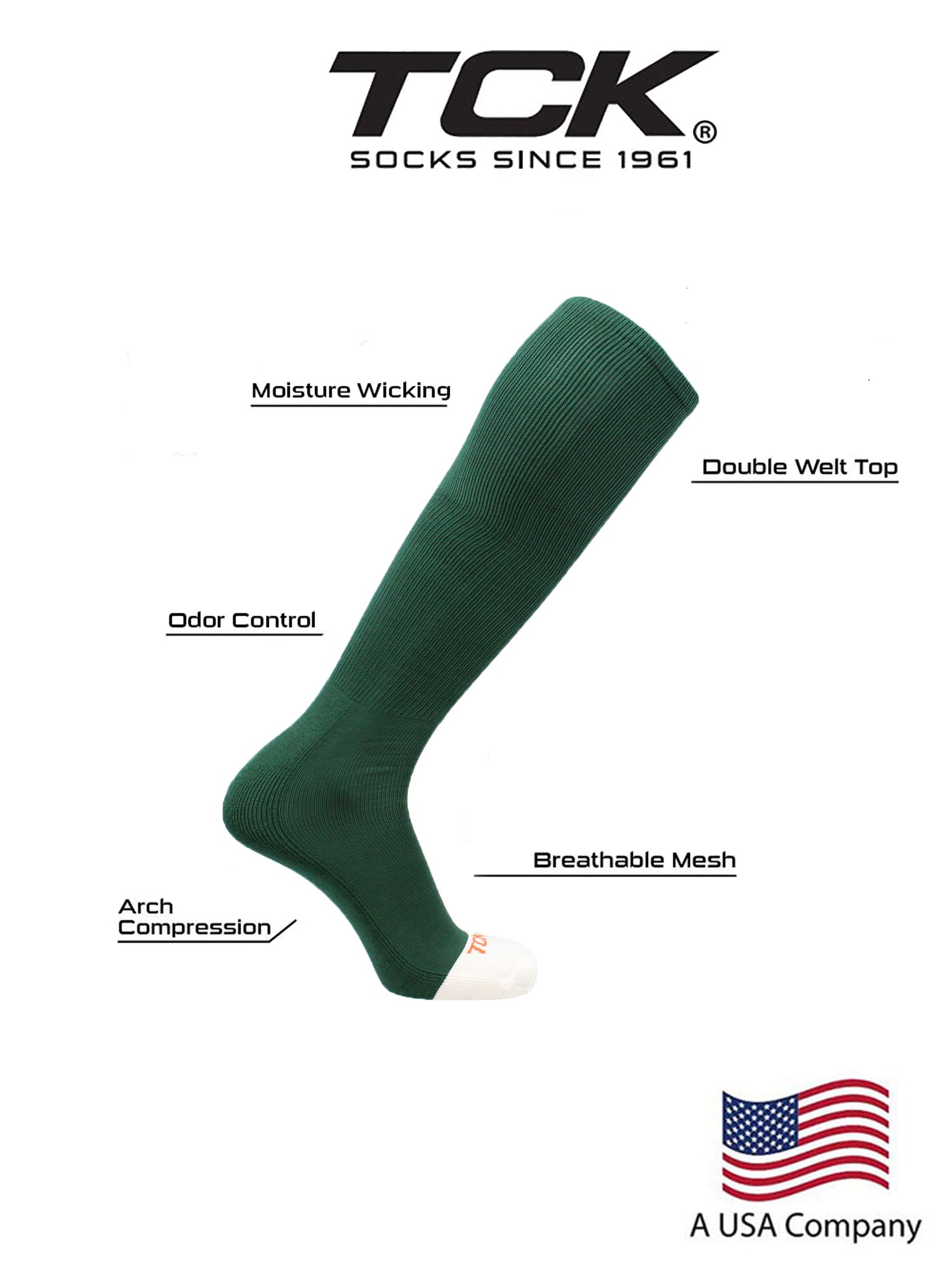 Our TCK Prosport OTC socks are a must have for your next game, outing, or practice. Designed by the leaders in team athletic socks, the Prosport is the ideal weight and length for athletes, while it also provides maximum performance and durability. TCK was founded in 1961 in North Carolina, where we still operate today. When purchasing TCK products, you can feel proud to support a USA based company that directly supports American employees.
