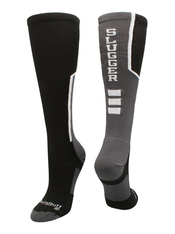 - PERFECT BASEBALL SOCKS: Show off your baseball swag in our Slugger Baseball Socks! These performance socks have the word "SLUGGER" down the back of the calf with a solid color shin. Makes a great gift for your favorite baseball player!
