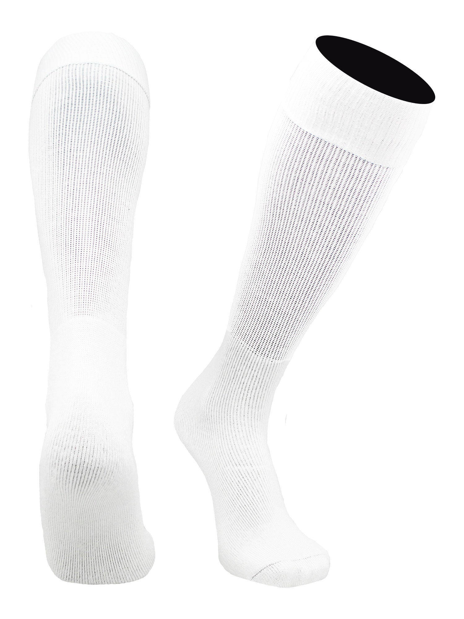 • BASIC YOUTH SOCCER SOCKS: The Multisport is a comfortable, soft, and affordably priced tube sock that's perfect for soccer. Hitting just below the knee, with a fold down top, and a cushioned footbed. This sock is ideal for soccer, baseball, softball, football, field hockey and more.