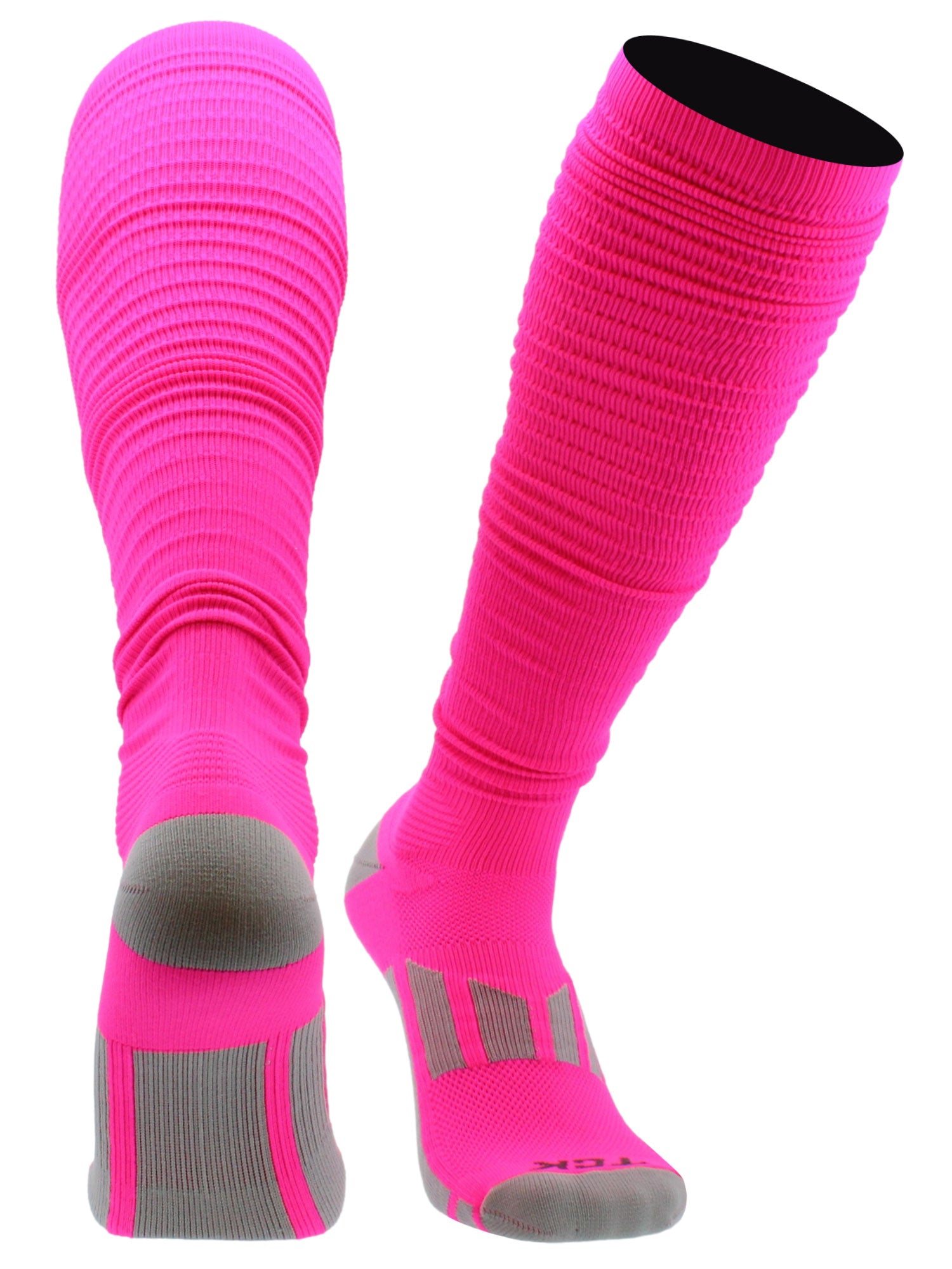 - Scrunch Socks Football players love for comfort and style. TCK’s pre scrunched football socks delivers the perfect over the calf fit for football, with moisture wicking fabric and sizes for youth, boys, and men making them a go to for game day.