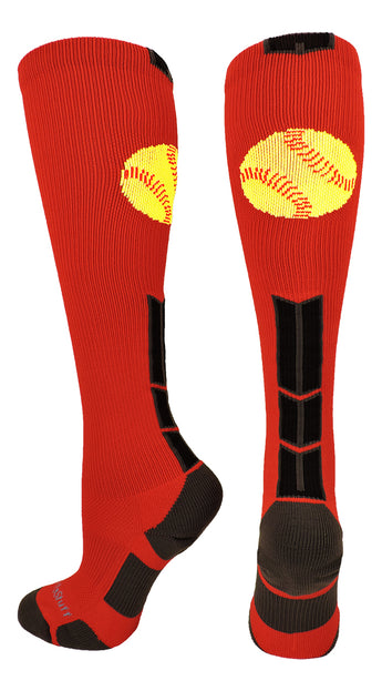 MadSportsStuff Softball Logo Over the Calf Socks. High performance athletic socks for all team sports and elite athletes. Great for teams and gifts.