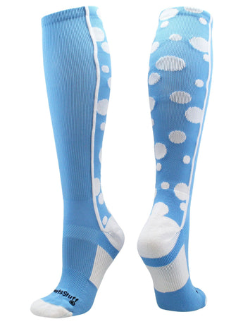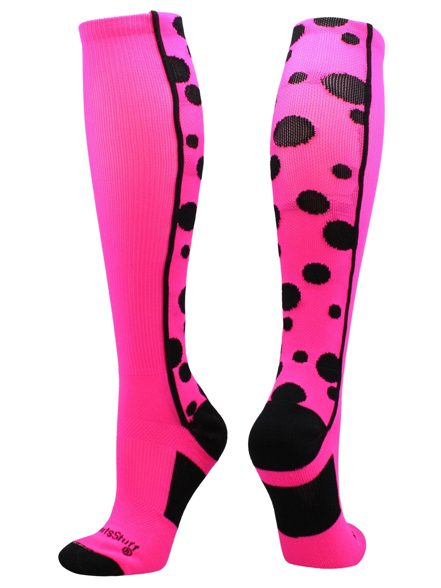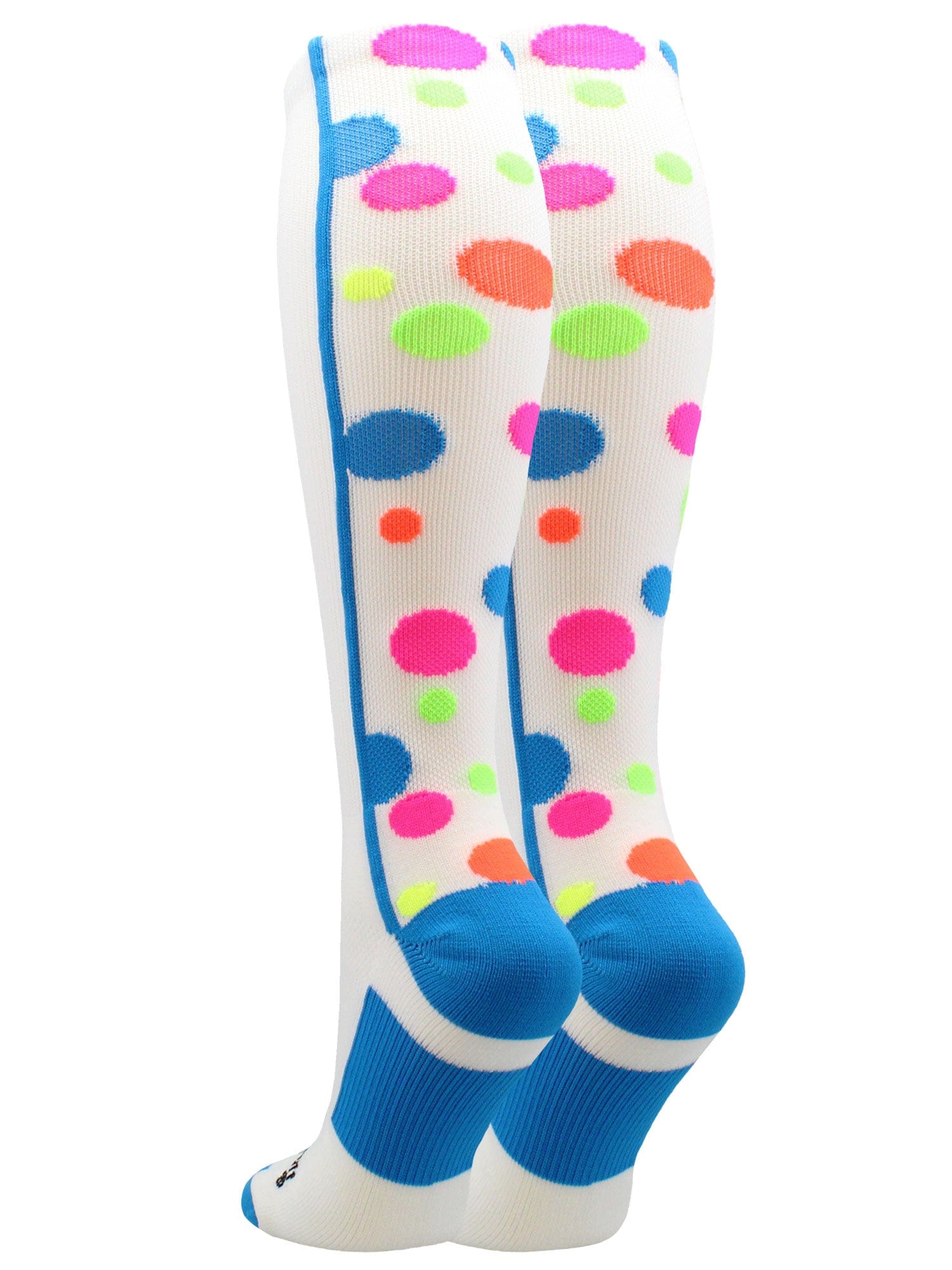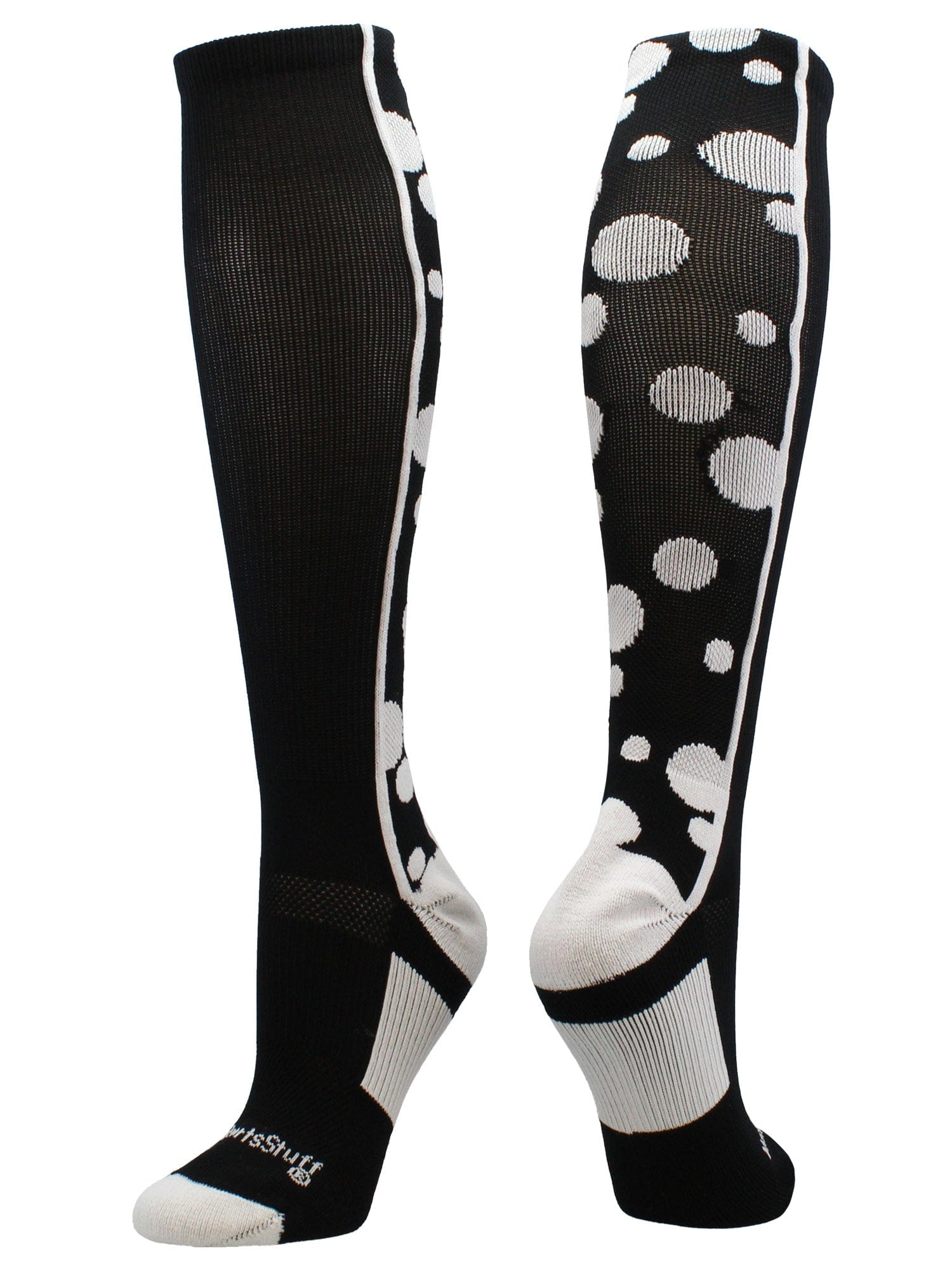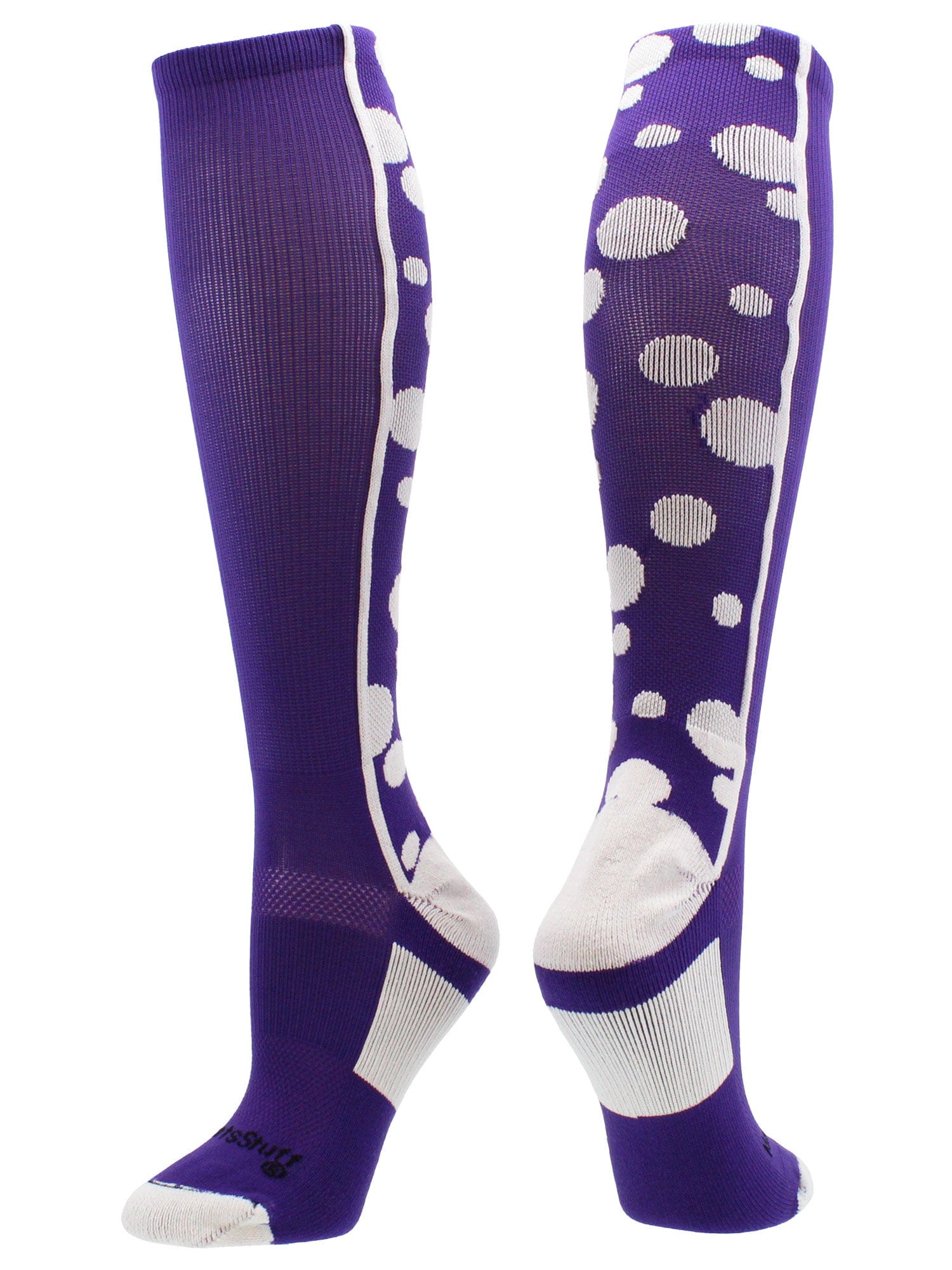 MadSportsStuff Crazy Dots Over the Calf Socks. High performance athletic socks for all team sports and elite athletes. Great for teams! Ideal for softball,baseball, lacrosse, basketball, field hockey, volleyball, wrestling, soccer, football, cheer, kickball and more!