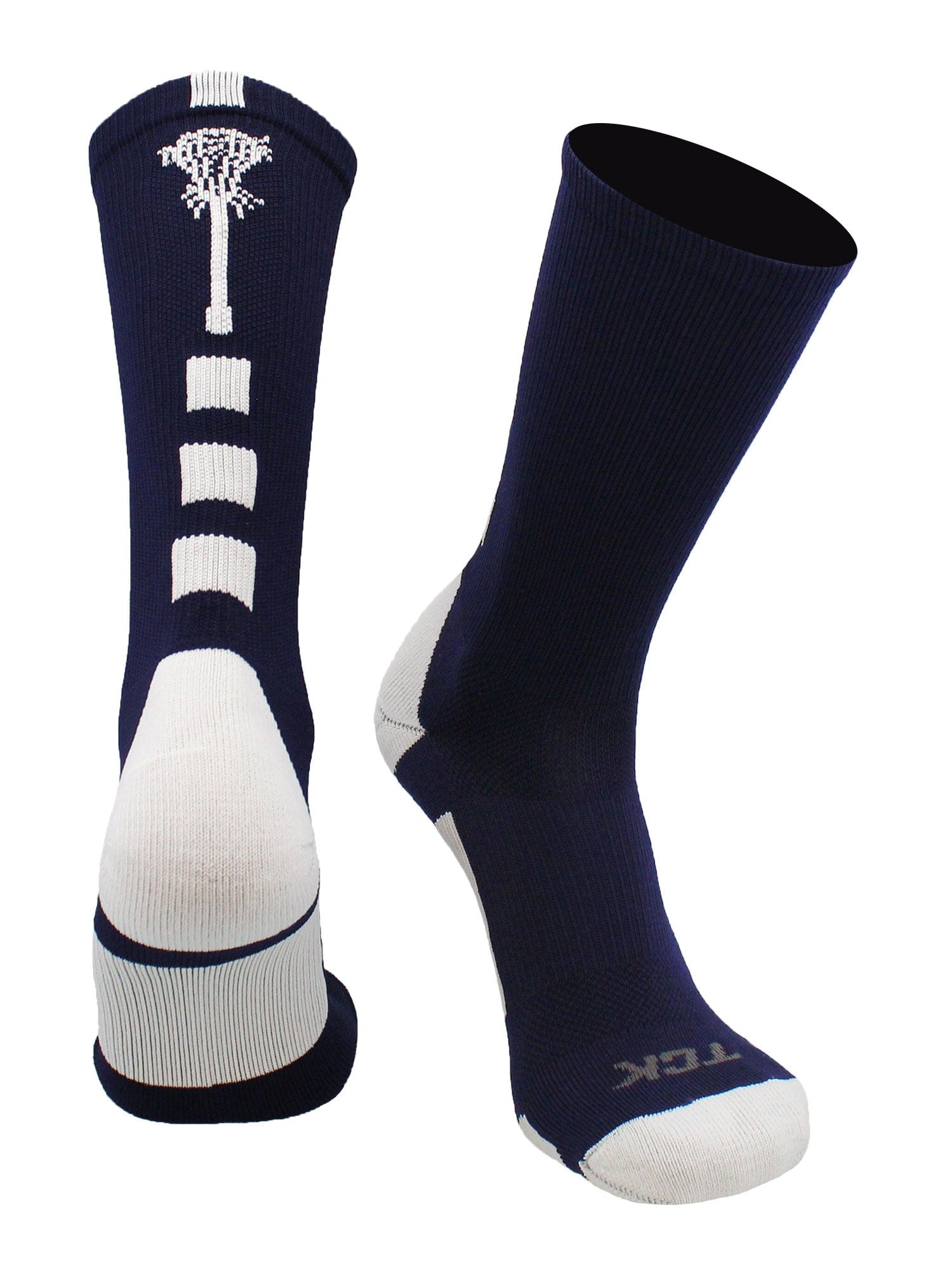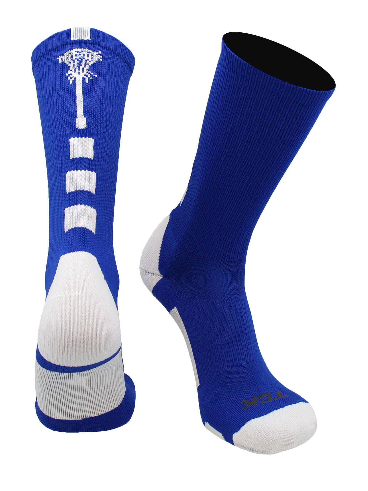 TCK Midline Lacrosse Crew Socks are a must have for your next game, outing, or practice. Featuring moisture control yarns, breathable mesh, ergonomic cushion, arch compression, & a double welt top, they provide maximum athletic performance. These socks are suitable for both boys and girls and come in youth and adult sizes. Founded in 1961, TCK socks are manufactured with pride in the USA.