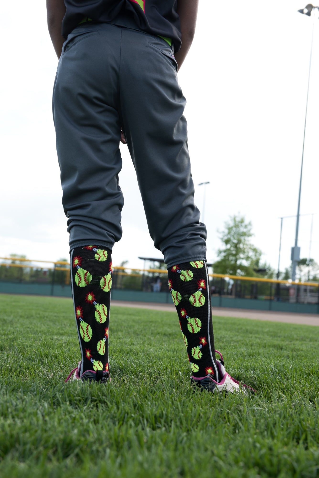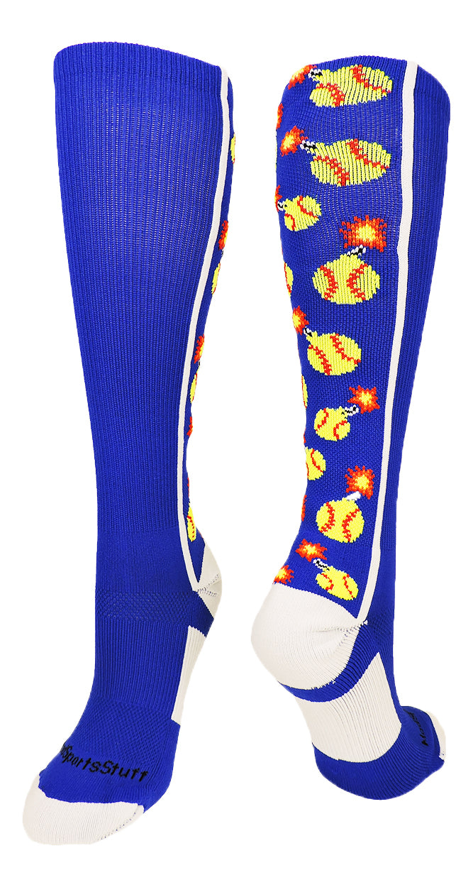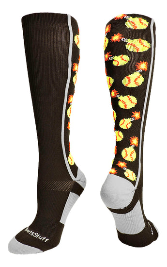 • PERFECT SPORTS SOCKS: These socks have softballs shaped as bombs, lit up, in an over the calf length. Great for teams such as Softball Bombers, Softball Bombs, Firecrackers, or for some super fun, crazy socks to light up the field. Also see our softball bomber headbands.