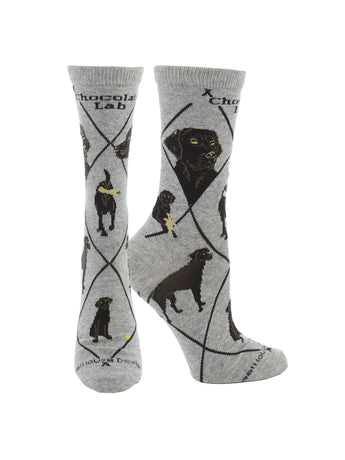 WHD Chocolate Lab Crew Socks sink into rich, cocoa-colored cuddles! These melt-in-your-heart socks feature an adorable Chocolate Lab design in luscious Gray tones. The soft, breathable blend of 65% Cotton, 20% Polyester, 12% Nylon, and 3% Spandex is perfect for lounging or letting everyone know you’re proudly Team Choccy Lab. A perfect 1-pack for the ultimate chocolate Lab lover.