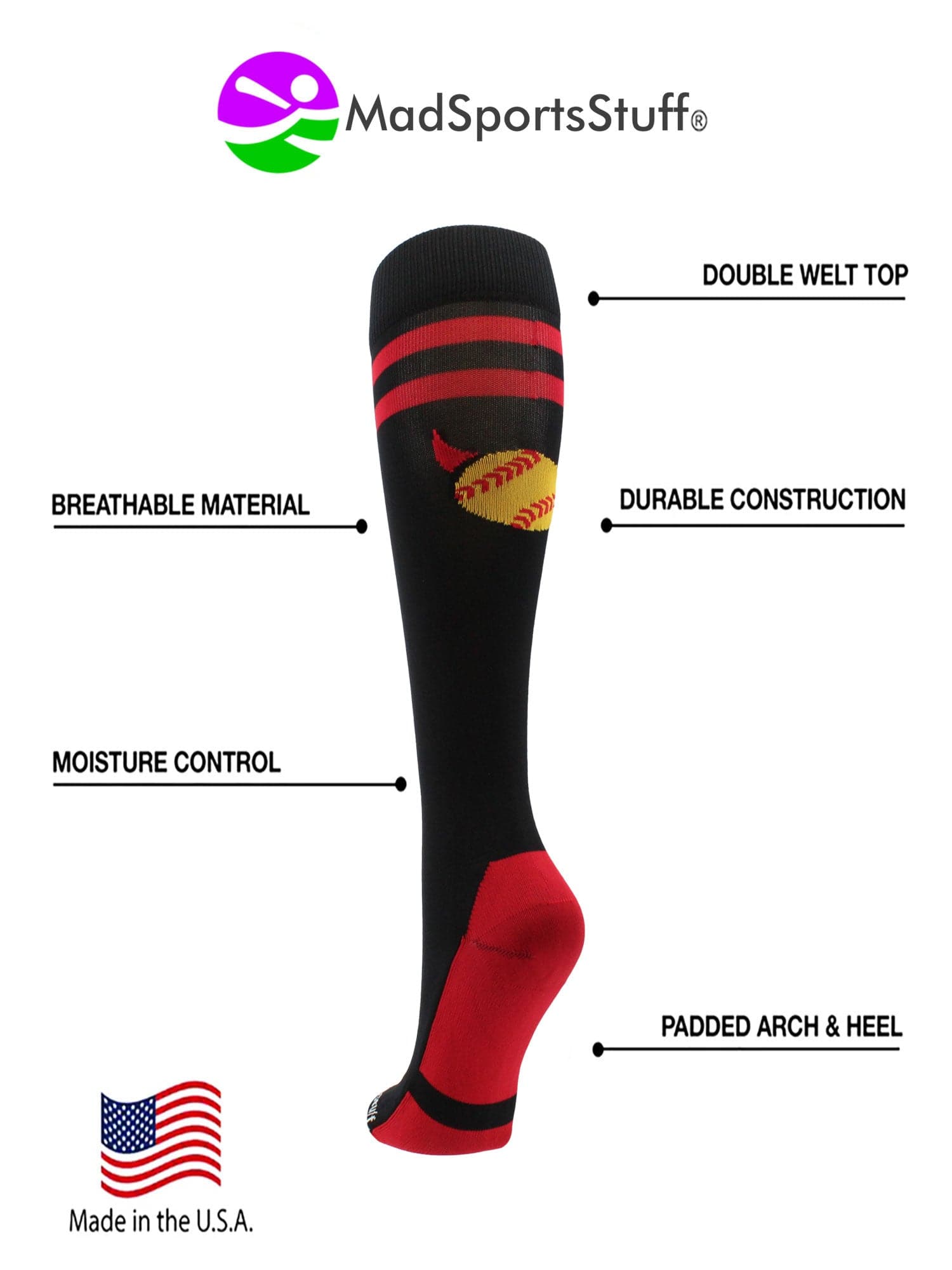 MadSportsStuff Devils Softball socks and Soccer socks. High performance long sports socks for softball or soccer. Available in girls and womens sizes. Perfect for team socks or team gifts.