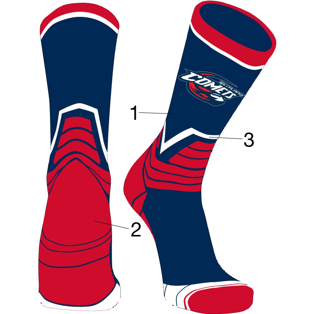 Custom Victory Crew Socks. High performance athletic socks for all team sports and elite athletes. Shoe Size: Small - Youth 12-5 Womens 4-7, Medium - Womens 7-10 Mens 6-9, Large - Womens 10-13 Mens 9-12, X-Large Womens 13+ Mens 12+.