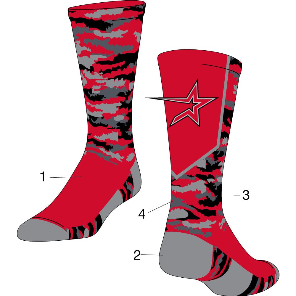 Custom Woodland Camo Crew Socks. High performance athletic socks for all team sports and elite athletes. Shoe Size: Small - Youth 12-5 Womens 4-7, Medium - Womens 7-10 Mens 6-9, Large - Womens 10-13 Mens 9-12, X-Large Womens 13+ Mens 12+.
