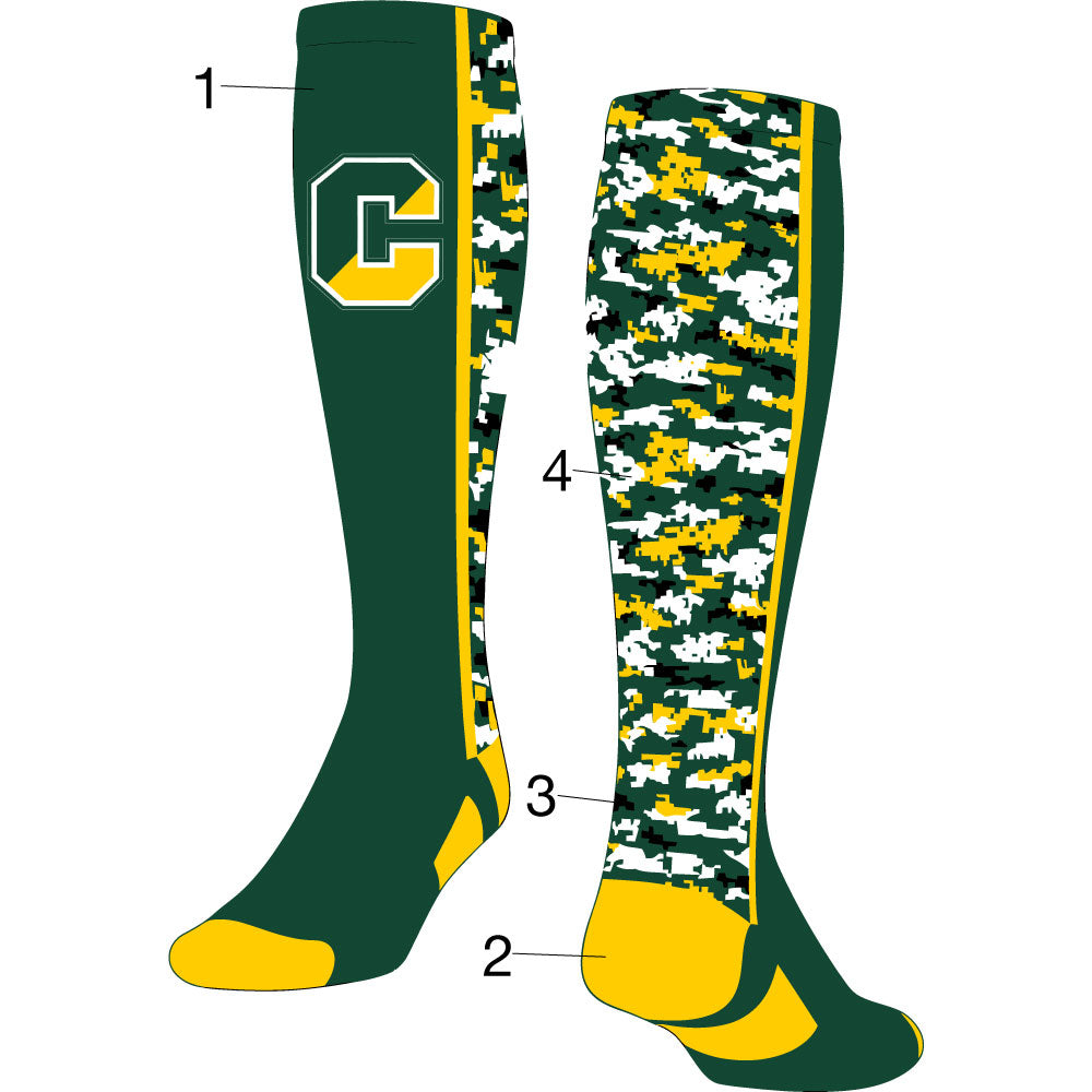 Custom Digital Camo Over the Calf Socks. High performance athletic socks for all team sports and elite athletes. Shoe Size: Small - Youth 12-5 Womens 4-7, Medium - Womens 7-10 Mens 6-9, Large - Womens 10-13 Mens 9-12, X-Large Womens 13+ Mens 12+.