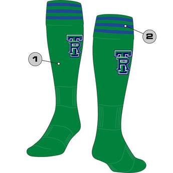 Custom Finale Over the Calf Striped Soccer Socks. High performance athletic socks for all team sports and elite athletes. Shoe Size: Small - Youth 12-5 Womens 4-7, Medium - Womens 7-10 Mens 6-9, Large - Womens 10-13 Mens 9-12, X-Large Womens 13+ Mens 12+.