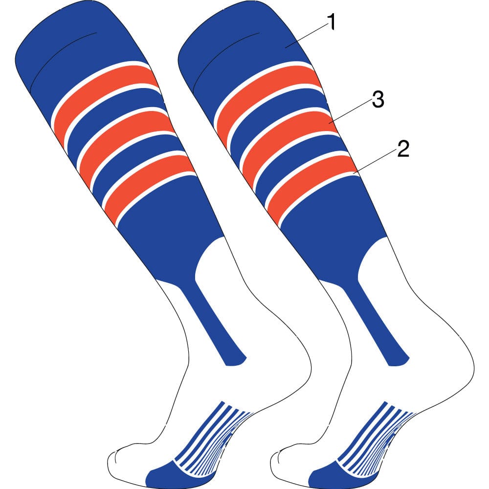 Custom Dugout Baseball Stirrup Socks Pattern D. Customize with your own team colors and logo to make the perfect Baseball Socks or Softball Socks. High performance athletic socks for all team sports and elite athletes. Shoe Size: Small - Youth 12-5 Womens 4-7, Medium - Womens 7-10 Mens 6-9, Large - Womens 10-13 Mens 9-12, X-Large Womens 13+ Mens 12+.