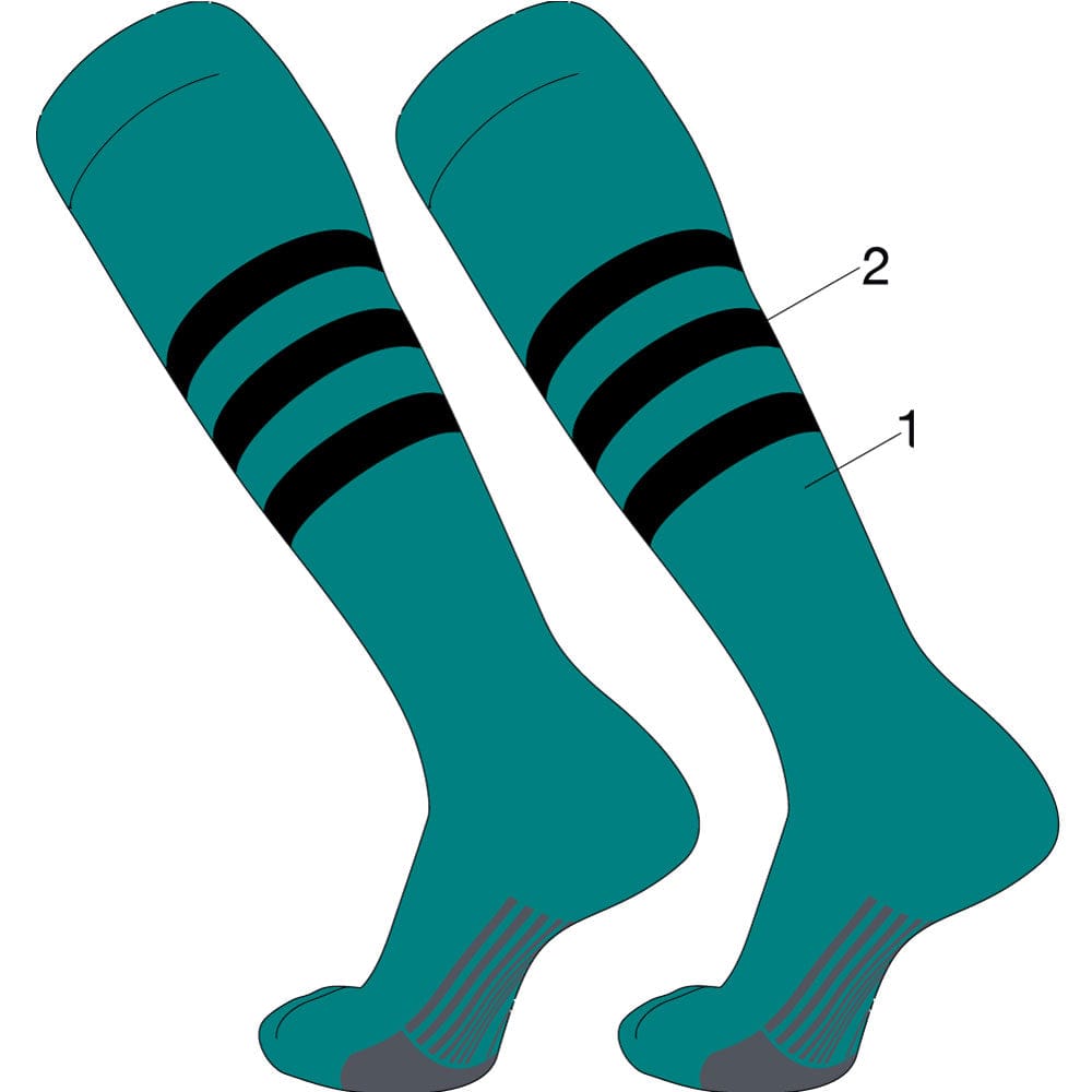 Custom Dugout Striped Baseball Socks Pattern B. Customize with your own team colors and logo to make the perfect Baseball Socks or Softball Socks. High performance athletic socks for all team sports and elite athletes. Shoe Size: Small - Youth 12-5 Womens 4-7, Medium - Womens 7-10 Mens 6-9, Large - Womens 10-13 Mens 9-12, X-Large Womens 13+ Mens 12+.