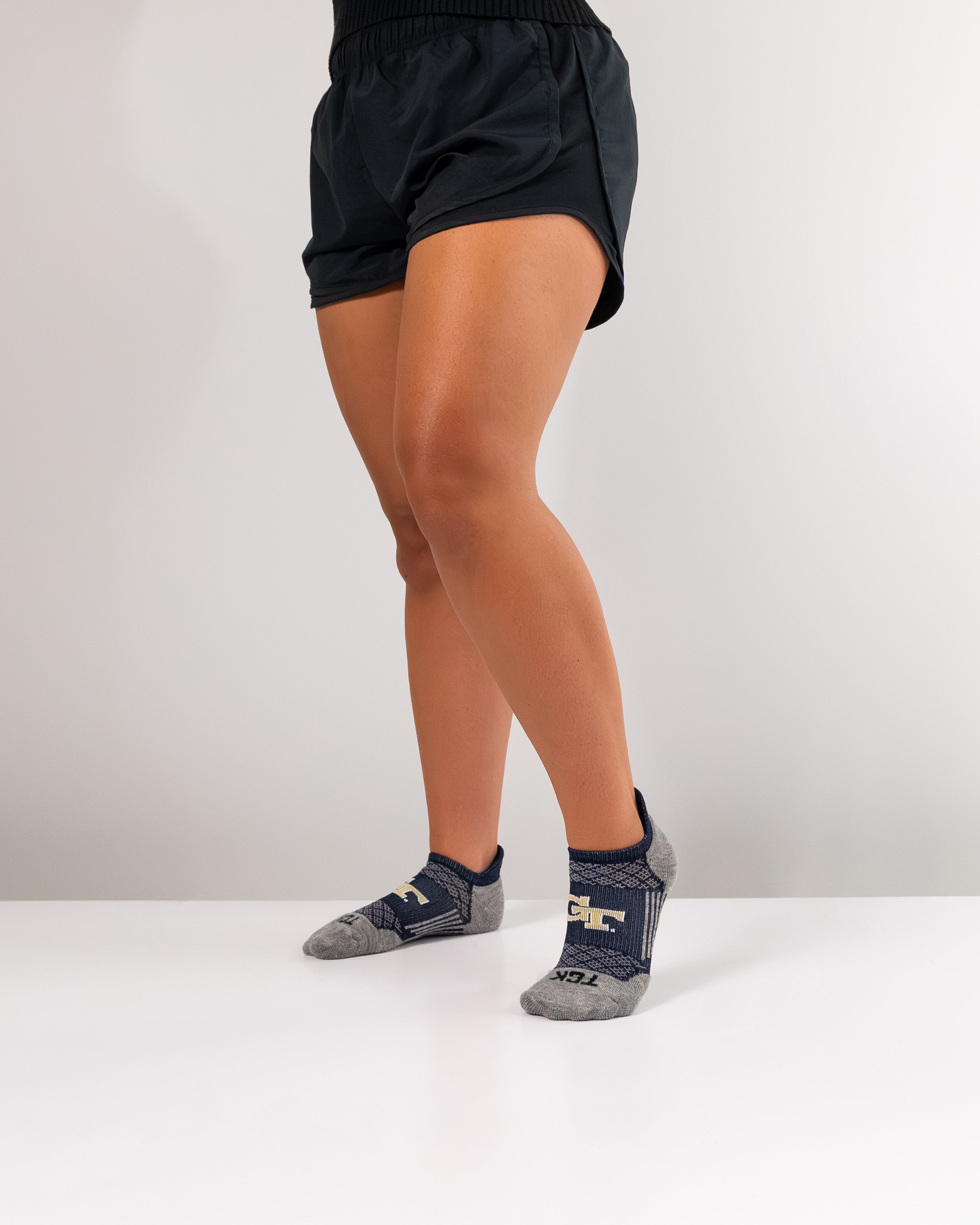 - LOW PROFILE DESIGN: Designed for athletes, sneakerheads, and fans alike, these no show socks with heel tab offer a sleek silhouette while protecting your heel and Achilles. The ultimate Georgia Tech Yellow Jackets running socks or casual sports socks for game day or everyday.