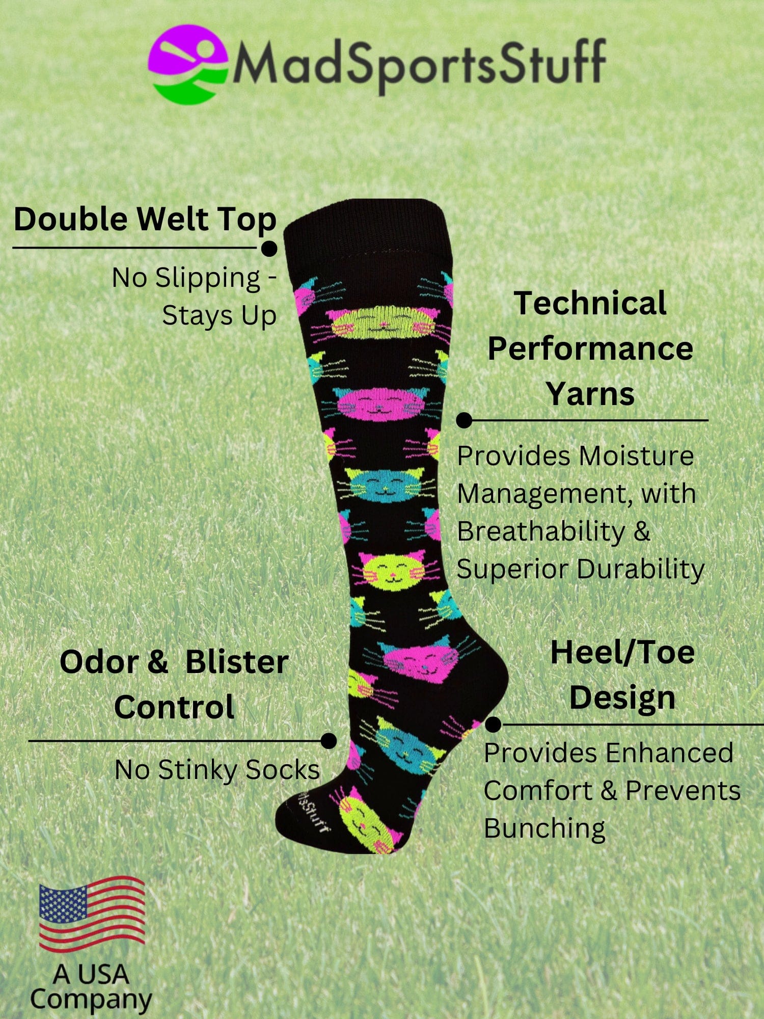 MadSportsStuff Good Kitty Cat Over The Calf Athletic Socks. Perfect socks for your favorite cat enthusiast! High performance athletic socks. . Ideal for softball, lacrosse, basketball, field hockey, volleyball, soccer, cheer, kickball and more!