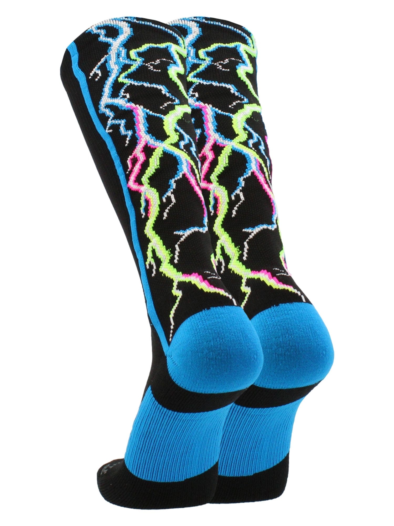 - PERFECT SPORTS SOCKS: Light up the field in these over the calf storm socks, featuring colorful electric lightning bolts. Ideal for softball, baseball, lacrosse, basketball, field hockey, volleyball, wrestling, soccer, football, cheer, kickball and more!
