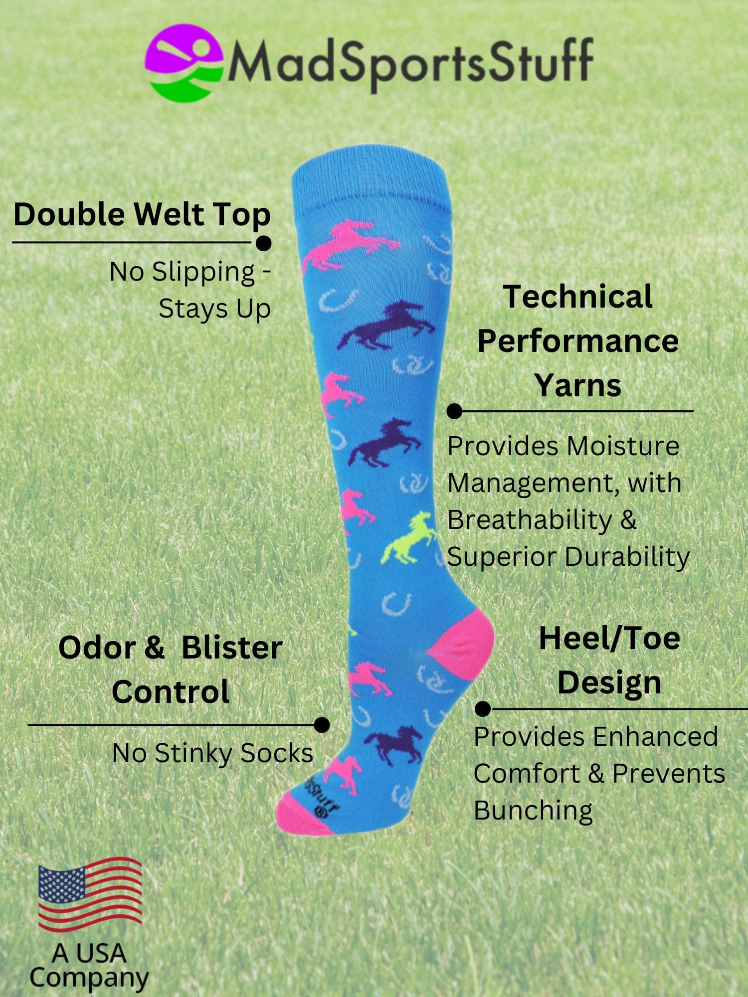MadSportsStuff Wild Horses Equestrian Athletic Over the Calf Socks. High performance athletic socks for all team sports and elite athletes.