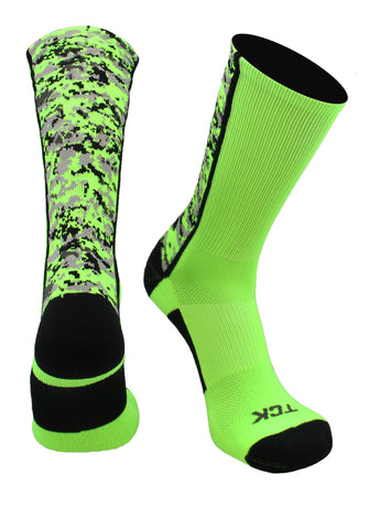- ELITE MULTISPORT SOCKS: Stand out on the field or court with these high performance athletic digital camo crew socks. These socks come in over 12 team color combinations using vibrant dyes that do not fade or run. This style sock hits mid-calf and is great for basketball, volleyball, lacrosse, football, wrestling and more!