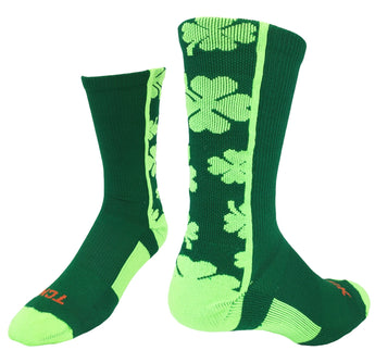 Limited Edition - TCK St Patrick's Day Lucky Clover Crew Socks. High performance athletic socks for all team sports and elite athletes.
