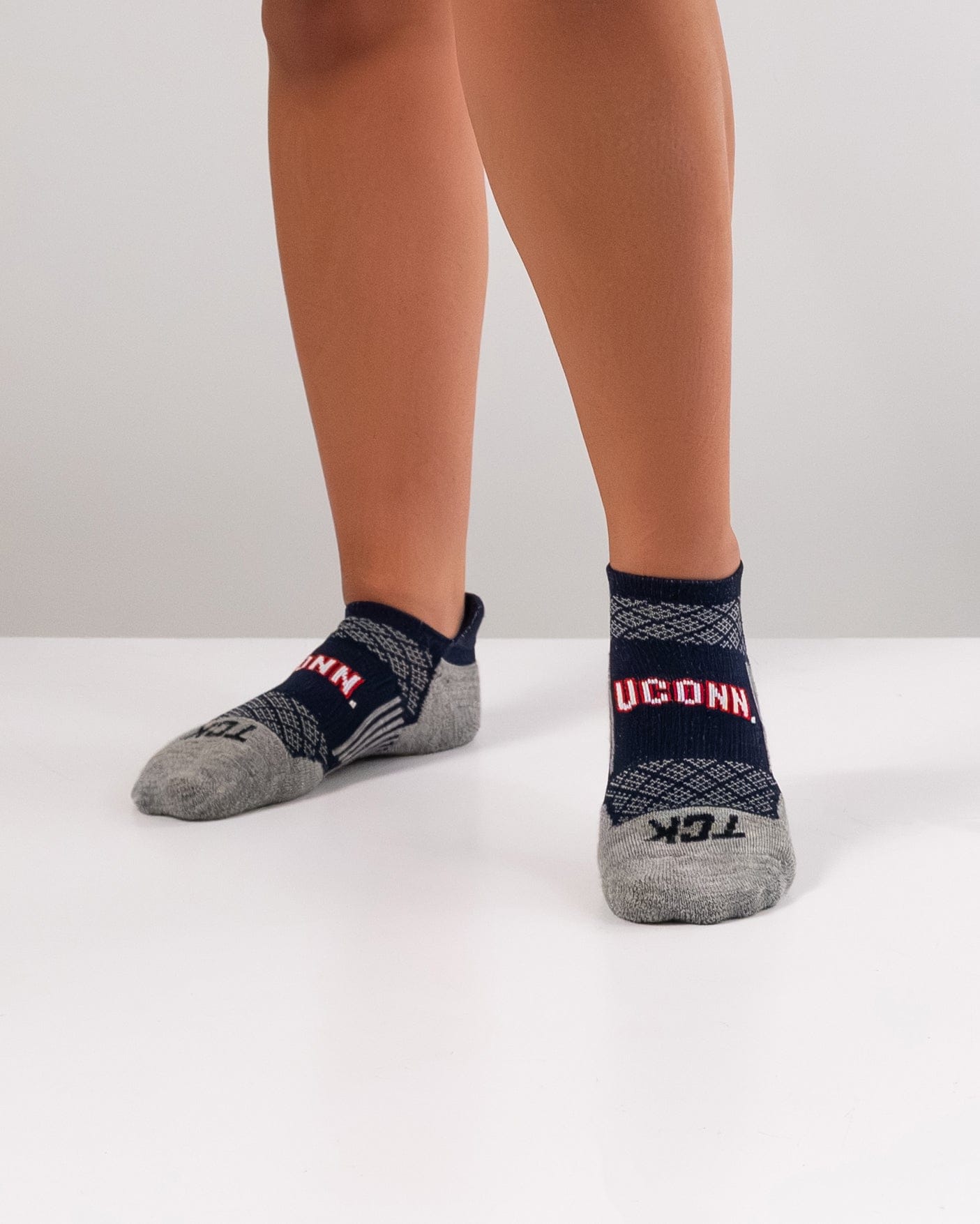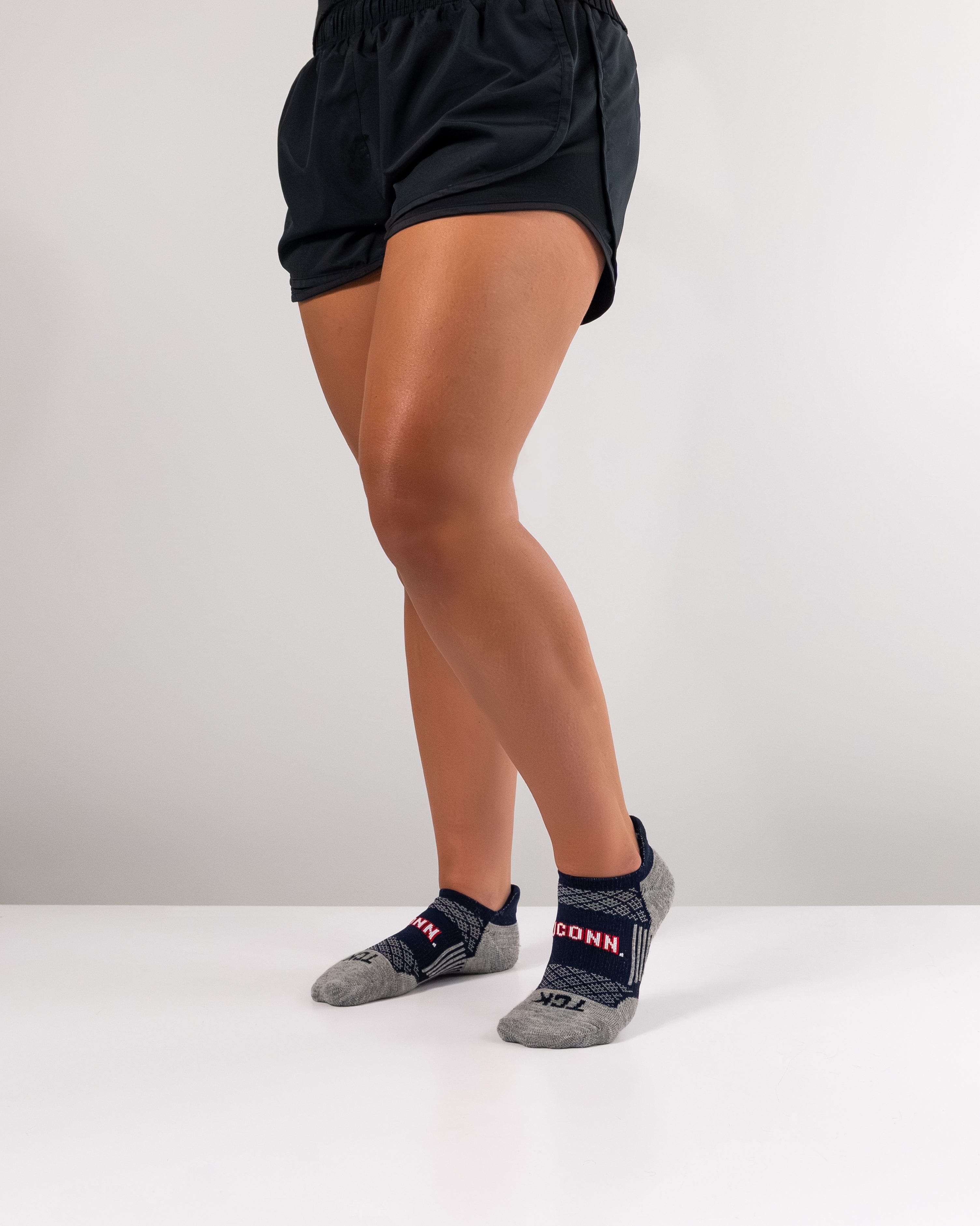 - LOW PROFILE DESIGN: Designed for athletes, sneakerheads, and fans alike, these no show socks with heel tab offer a sleek silhouette while protecting your heel and Achilles. The ultimate UCONN Huskies running socks or casual sports socks for game day or everyday.