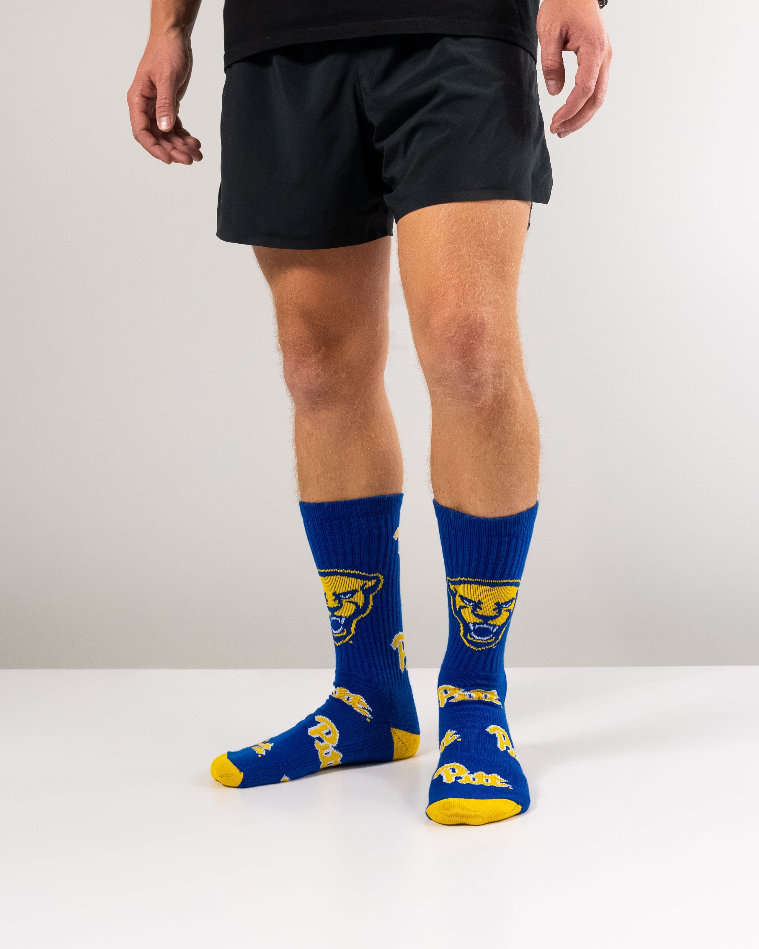 Step into the Mayhem and show off your Panthers pride with socks built for both spirit and performance. Whether you're hitting the gym or heading to class, these versatile socks pair perfectly with sneakers or slides. Designed for comfort, breathability, and durability, they make a great gift for Father’s Day, birthdays, back-to-school, or stocking stuffers. Made from a high-quality blend of 94% Polyester, 4% Rubber, and 2% Spandex. Hail to Pitt!