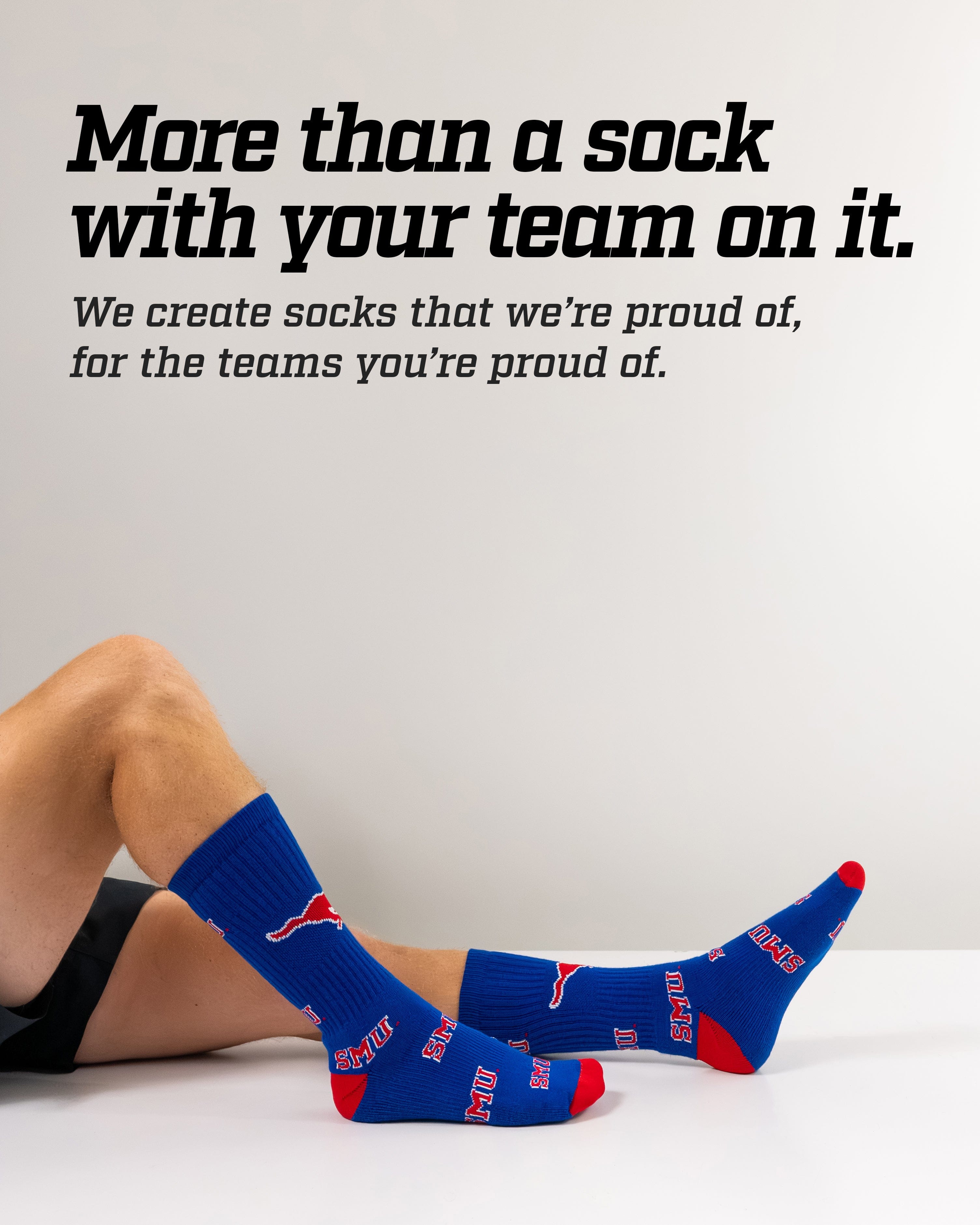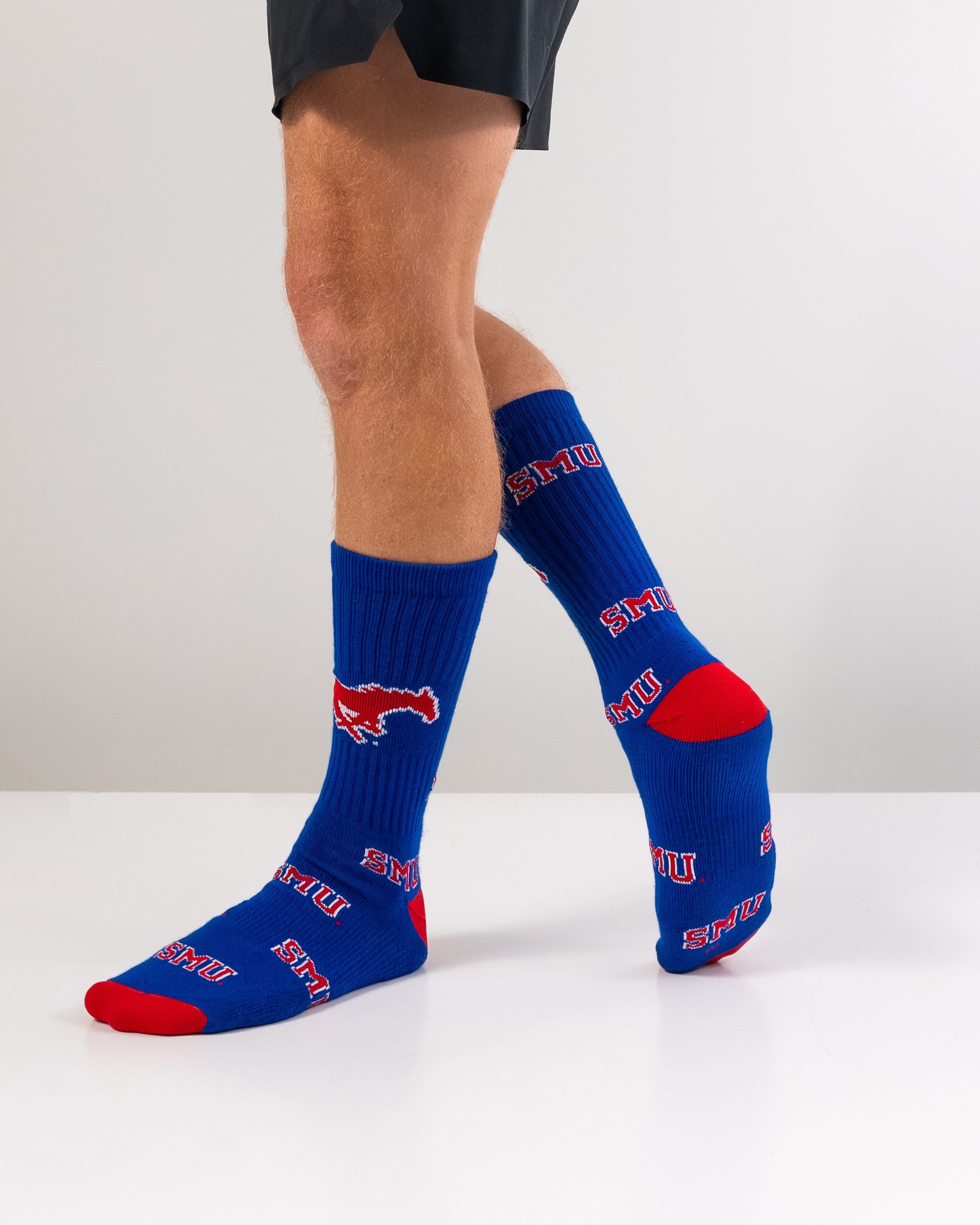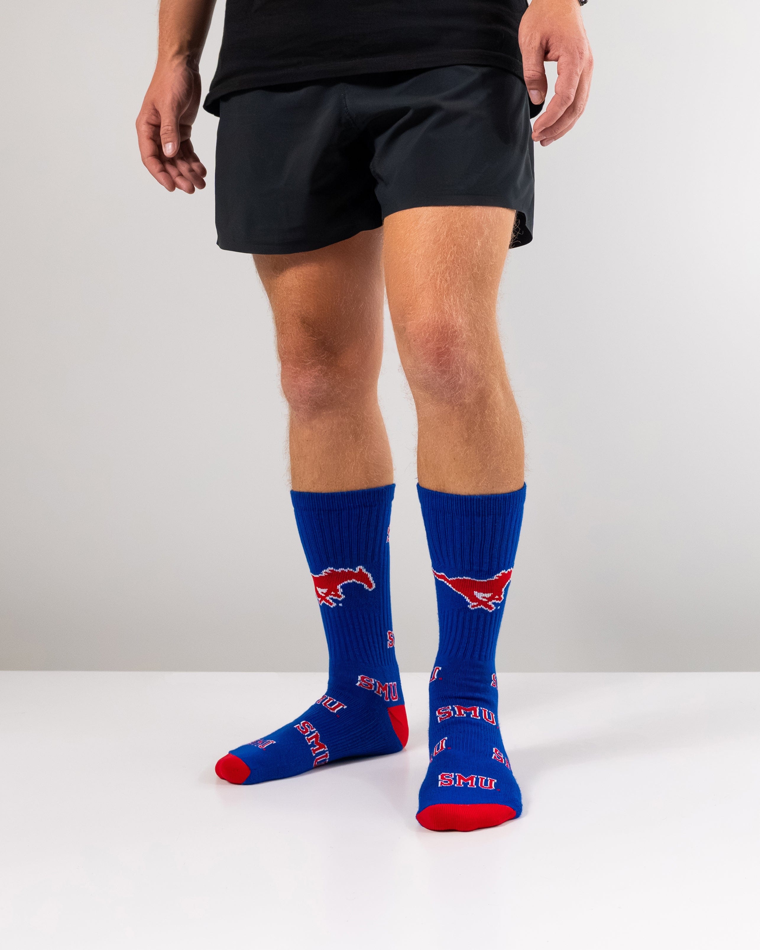 Step into the Mayhem and show off your Mustangs pride with socks built for both spirit and performance. Whether you're hitting the gym or heading to class, these versatile socks pair perfectly with sneakers or slides. Designed for comfort, breathability, and durability, they make a great gift for Father’s Day, birthdays, back-to-school, or stocking stuffers. Made from a high-quality blend of 94% Polyester, 4% Rubber, and 2% Spandex. Go Mustangs, S-M-U!